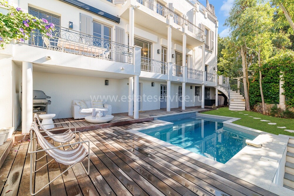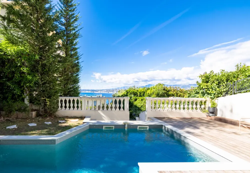 Ухоженный особняк в одном из самых престижных районов Ниццы. Общая площадь 355 m² (жилая 222 m²) - большая светлая гостиная с высокими окнами и видом на море, отдельная кухня, пять спален с балконами/выходом на террасу, три ванные комнаты, домик у бассейна, кладовая, закрытый гараж и два парковочных места. Годовой налог 5.018 €.