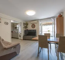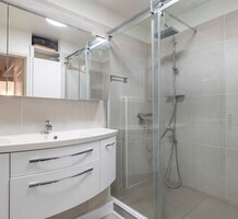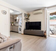 Ухоженная квартира на верхнем этаже современного (2008 года постройки) здания с лифтом поблизости от пляжа и всех удобств. Общая площадь 72.2 m² (жилая 67.2 m²) - прихожая 7.2 m², двойная гостиная-столовая 22.7 m² с кухней и солнечным балконом 5 m² - приятный вид на горы, две спальни 10.8 и 11.2 m², ванная комната с душевой и отдельный туалет. Отличное состояние, установлен кондиционер, можно приобрести гараж. Коммунальные платежи 100 €, годовой налог 1.374 €.