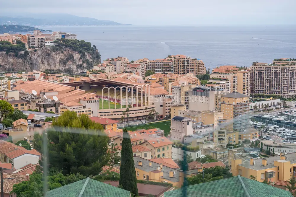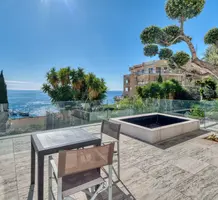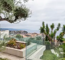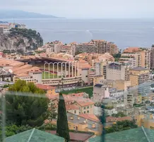 Квартира в резиденции 2019 года постройки с бассейном и видеонаблюдением на въезде в Монако. Общая площадь 112 m² (жилая 62 m²) - прихожая с гардеробной, гостиная 35.6 m² с открытой кухней и спальня 12 m² выходят на панорамную террасу-сад 50 m², ванная комната с душевой 9.3 m² и отдельный туалет. Отличное состояние, включено крытое парковочное место, всё рядом. Коммунальные платежи 420 € (общие расходы, лифт, холодная вода, бассейн), годовой налог 1.520 €.