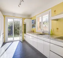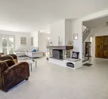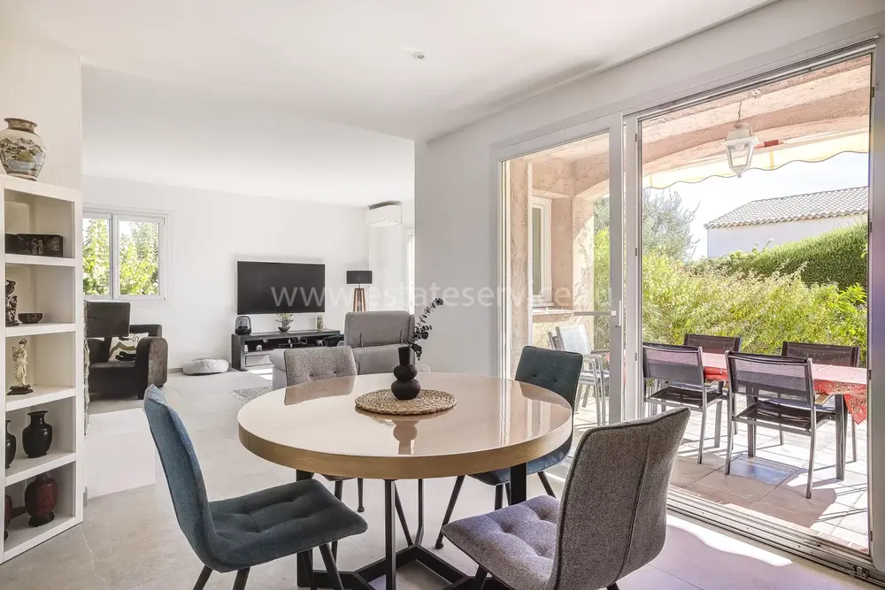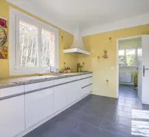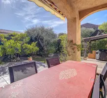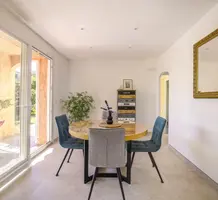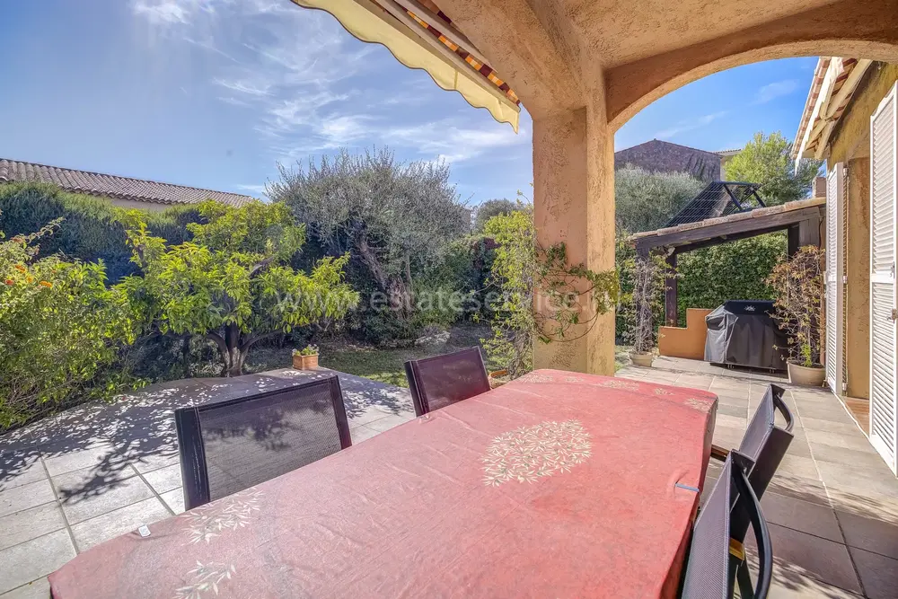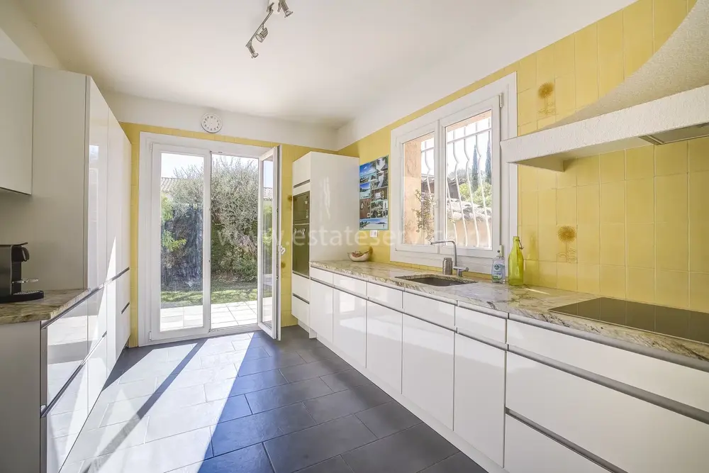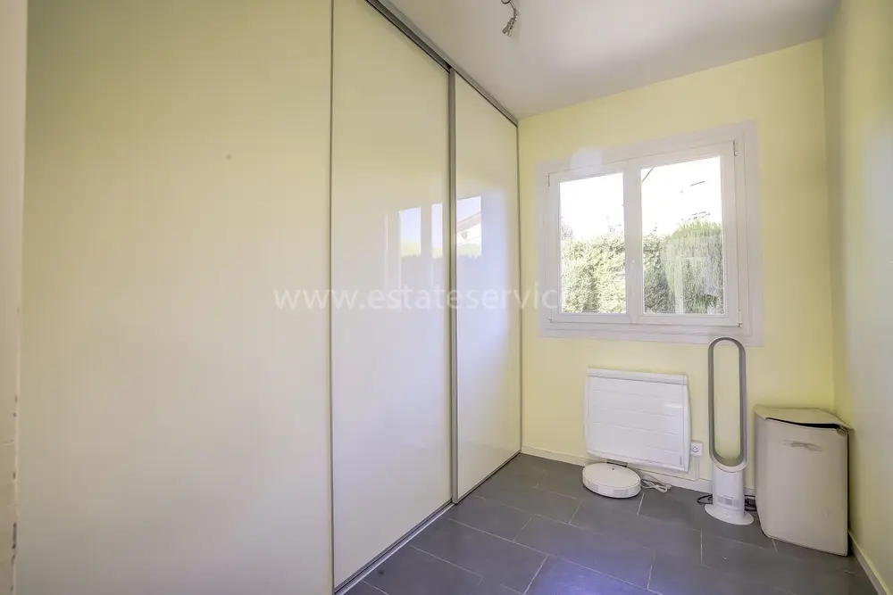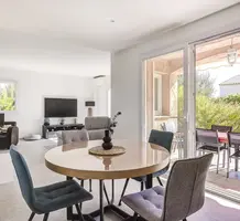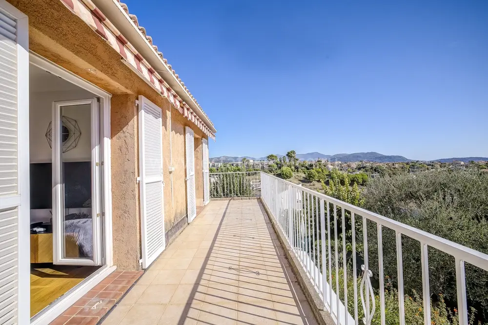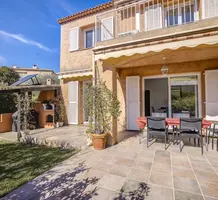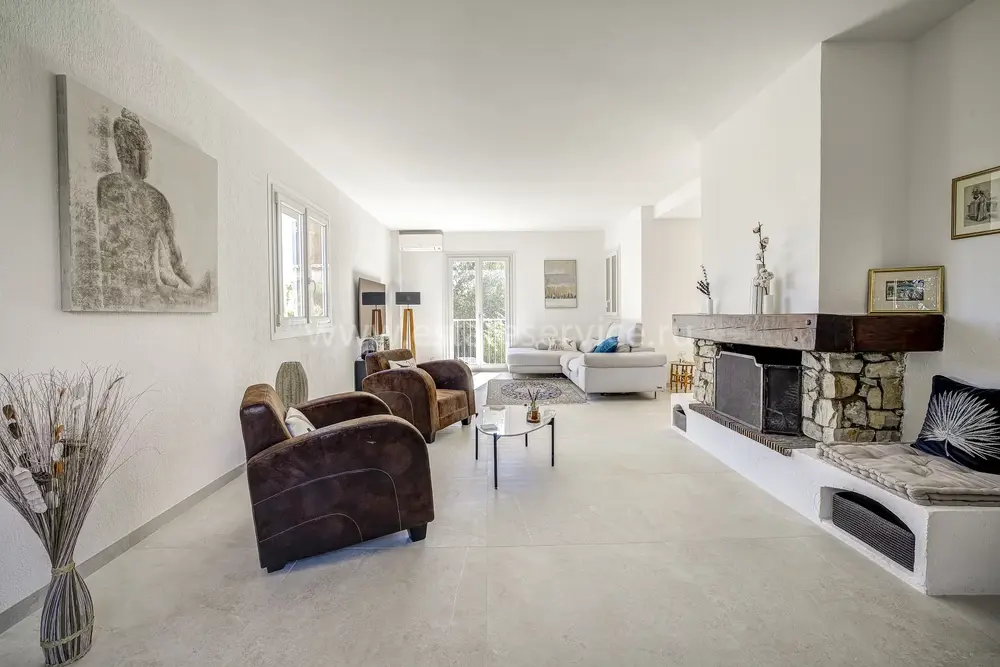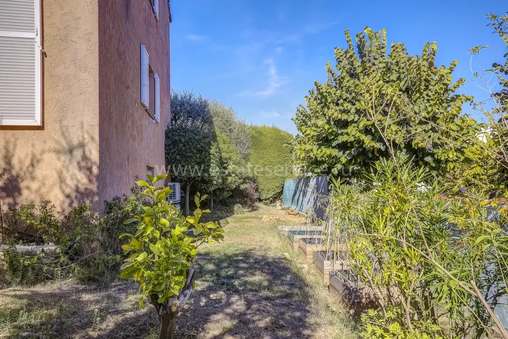 Обновлённая вилла в безопасной закрытой резиденции с консьержем, бассейном и теннисным кортом поблизости от школы, автобусной остановки и магазинов. Площадь дома 180 m² - прихожая 11.3 m², светлая и просторная гостиная 37 m² с камином, столовая 12.7 m², новая отдельная кухня 11.8 m² с подсобным помещением и туалет. Наверху разместились четыре спальни 10.6, 13.6, 15.6 и 16.3 m², одна с террасой - вид на холмы и море, главная - с ванной комнатой и туалетом, кабинет 11 m² (можно использовать как спальню) и общая ванная комната с туалетом. Есть также пристройка (спальня с душевой и туалетом) и большой гараж/подвал 65 m². На ровном участке 550 m² много фруктовых деревьев, печь для пиццы, паркинг на 3 автомобиля и гостевое парковочное место. Отменное состояние, двойное остекление, новые жалюзи, кондиционер, электрический конвекторный обогреватель, наружное освещение. Коммунальные платежи 132 €, годовой налог 3.131 €.