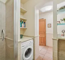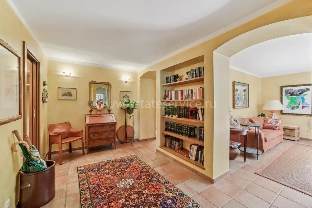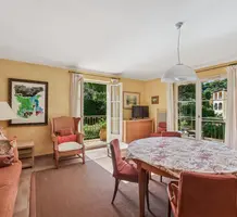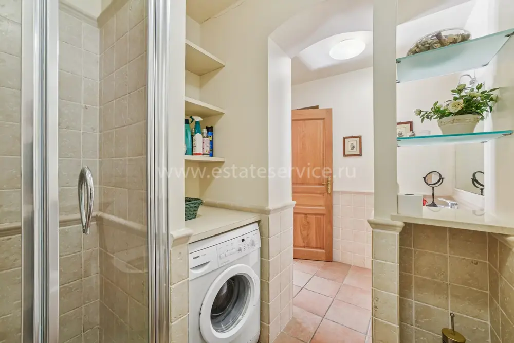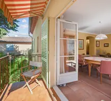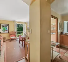 Квартира на верхнем (третьем) этаже тихой резиденции с лифтом, консьержем, садиком и видеонаблюдением в самом центре Сен-Жан-Кап-Ферра. Жилая площадь 78 m² - прихожая, светлая гостиная-столовая с двумя балконами, три спальни, одна со своим большим балконом - приятный вид на зелень, ванная комната с туалетом и гардеробная. Хорошее состояние, двойные стеклопакеты, оптоволокно, можно установить кондиционер, включены кладовая и гараж. Коммунальные платежи 304 €, годовой налог 1.370 €.