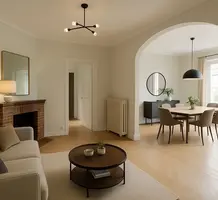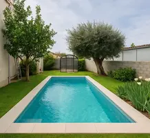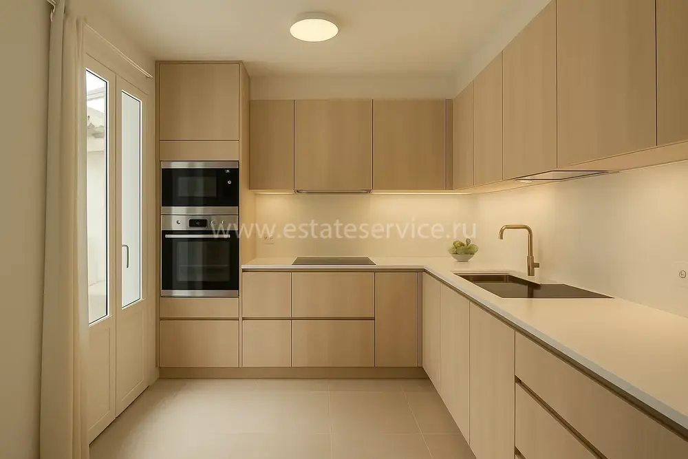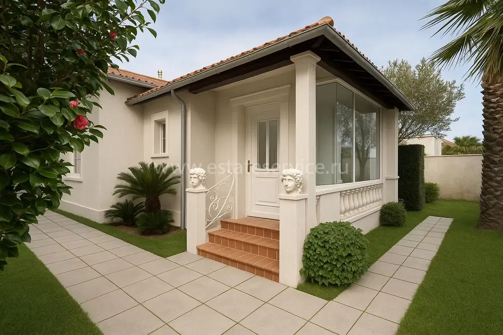 Смежная вилла с хорошим потенциалом и удобным расположением недалеко от магазинов и моря. Жилая площадь 77.7 m² + гараж и пристройка, на ровном участке 409 m² много зелени, можно оборудовать бассейн. В основной части - гостиная 23 m² с верандой, столовая, отдельная кухня, спальня с собственной ванной комнатой, а также отдельные (можно объединить) двухуровневые апартаменты - гостиная, мини-кухня и спальня с душевой комнатой. Фото 3D-визуализации представлены исключительно для наглядности, могут не отражать точную планировку интерьера.
