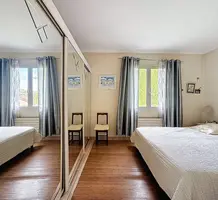 Апартаменты в небольшой уютной резиденции в 500-х метрах от моря, сектор La Badine. Жилая площадь 78.09 m² + отдельная студия-кабинет 33.8 m² на первом этаже (удобный вариант под гостевые апартаменты и/или сезонную аренду) + две террасы 30 и 47 m². Хорошее состояние, коммунальные платежи всего 60 € за год - расходы на уход за воротами и садом.