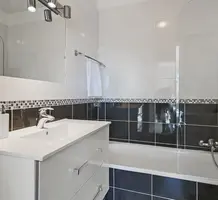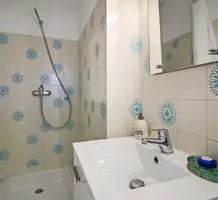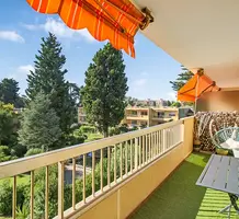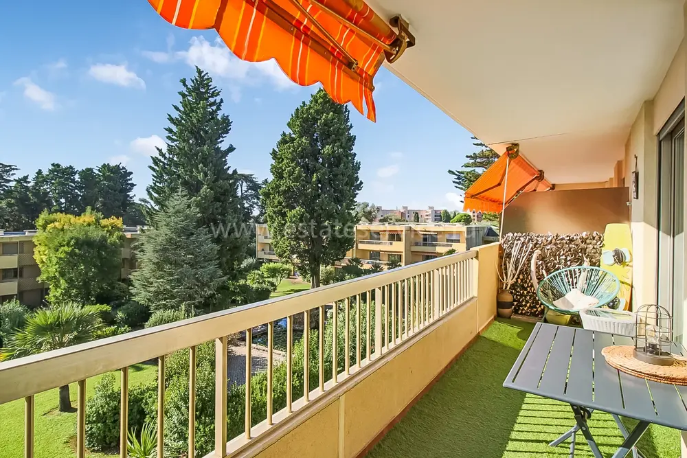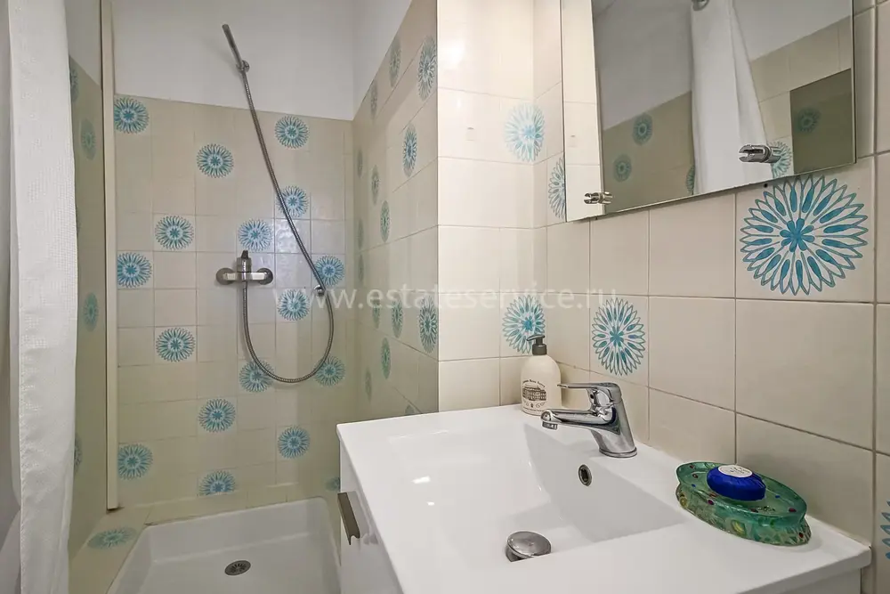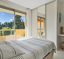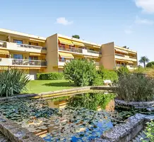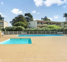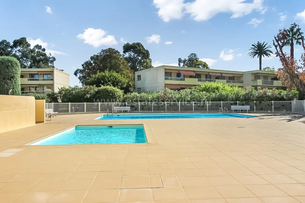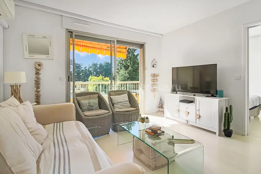 Апартаменты на верхнем (третьем) этаже о закрытого кондоминиума с двумя бассейнами, садом и пешей доступностью от пляжа. Площадь квартиры 60 m² - светлая гостиная 27 m² с кухней открытой планировки, две комфортабельные спальни 10 и 10 m², ванная комната, душевая, отдельный туалет и терраса 11 m² с приятным видом на зелень. Приличное состояние, включено частное парковочное место на территории. Коммунальные платежи 240 €, годовой налог 1.035 €.