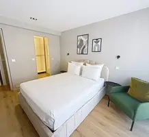 Удобная квартира на пятом (5/8) этаже престижного дома с лифтом возле Place de Gaulle. Общая площадь 59.8 m² (жилая 51 m²) - прихожая 5.7 m² с встроенным шкафом, гостиная 21.4 m² с кухней и балконом 8.8 m², спальня 12.1 m² с шикарной гардеробной 3.8 m², стильная душевая с окном и двойной раковиной, а также отдельный туалет. Отменное состояние, включена кладовая, всё пешком. Коммунальные платежи 150 €, годовой налог 800 €.