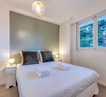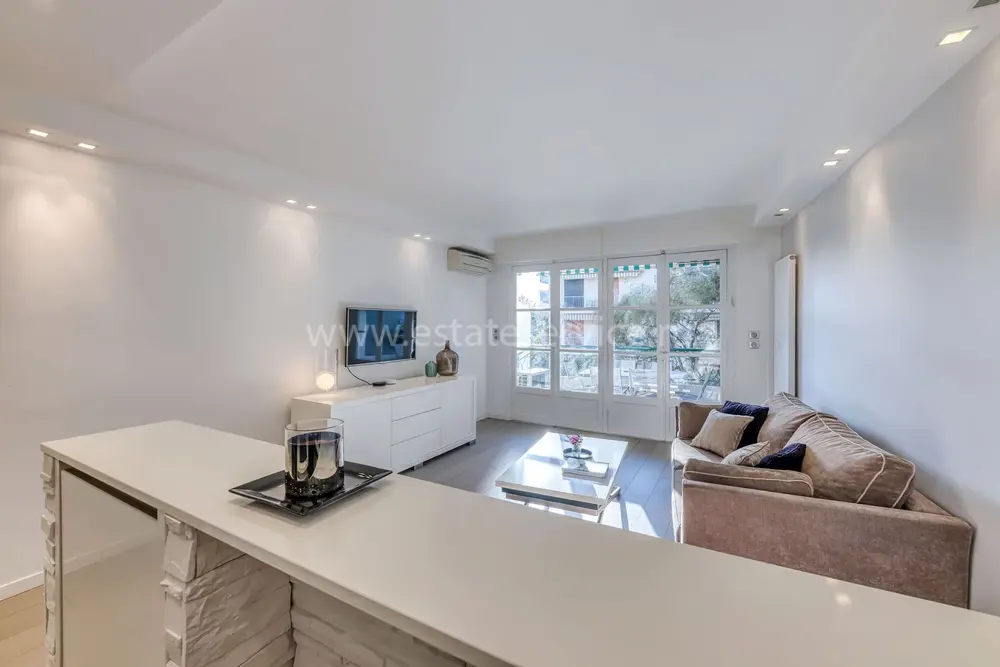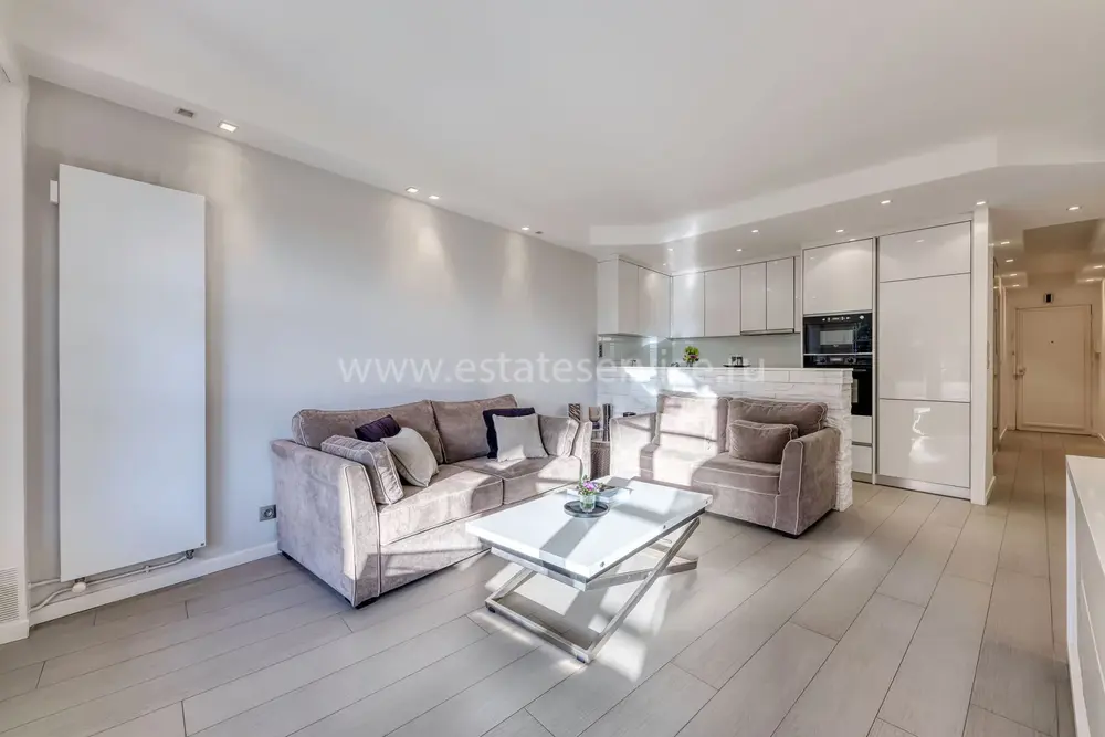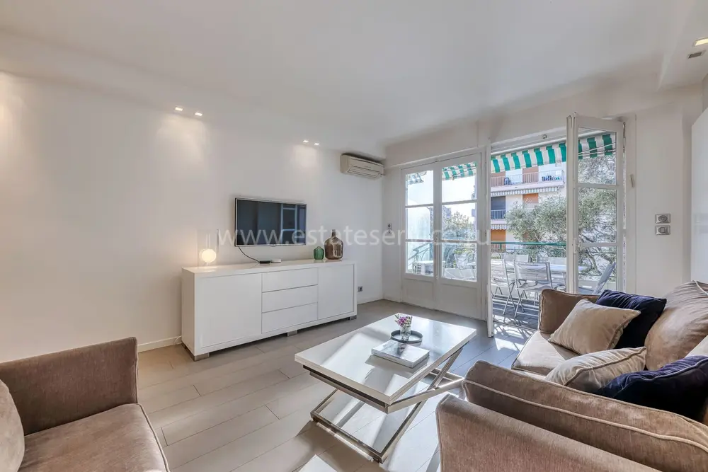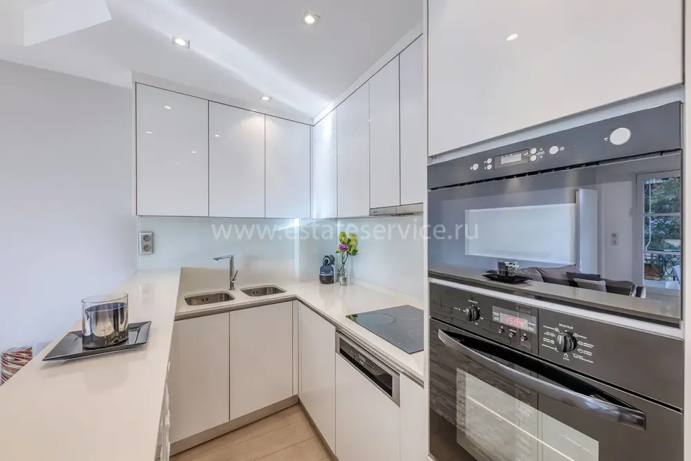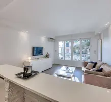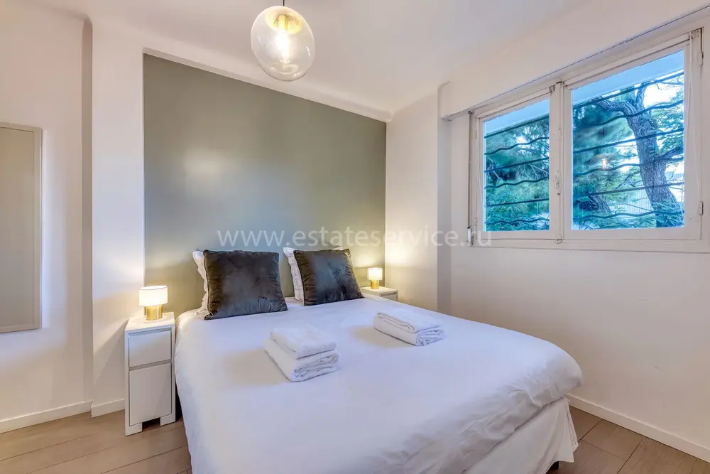 Квартира на третьем этаже закрытой резиденции в 250-ти метрах от набережной Круазет. Общая площадь 50.3 m² (жилая 44.4 m²) - прихожая 6.1 m², гостиная 24.4 m² с кухней и террасой 5.8 m², спальня 9.3 m², душевая и отдельный санузел. Отличное состояние, включён гараж. Коммунальные платежи 302 €, годовой налог 1.044 €.