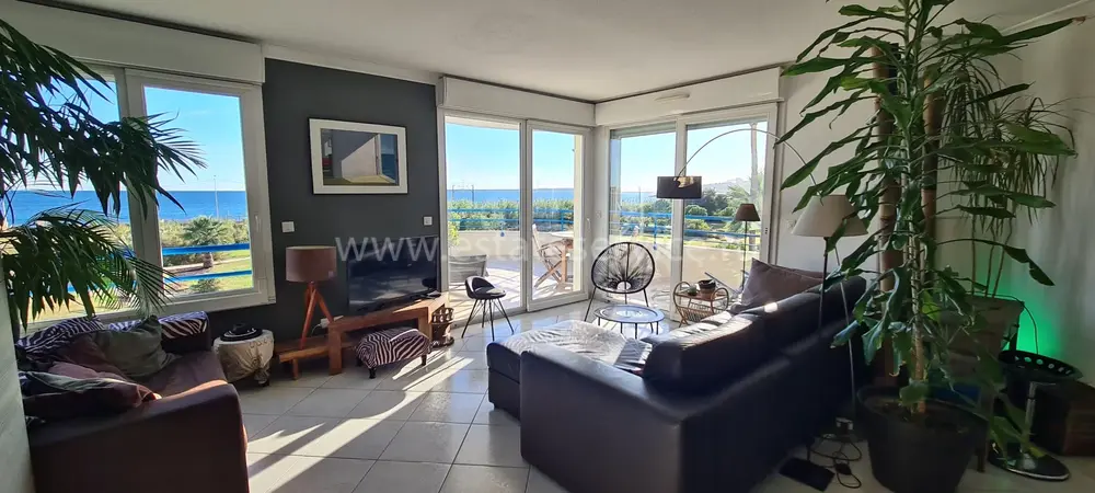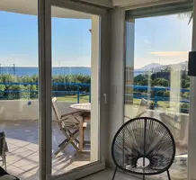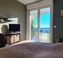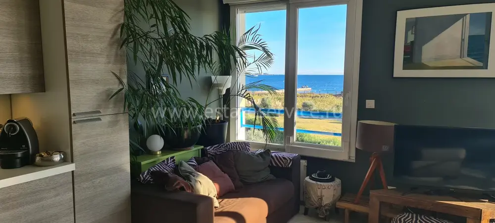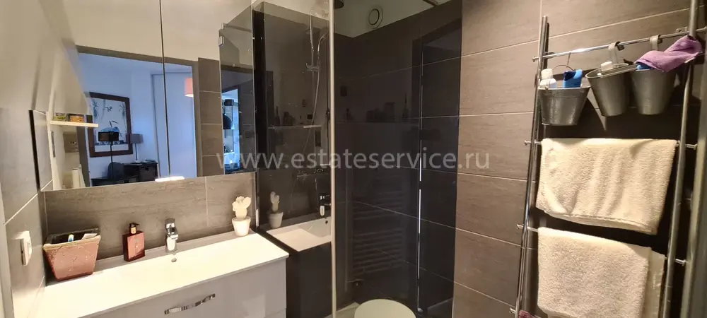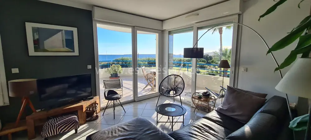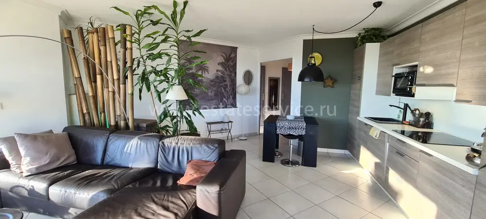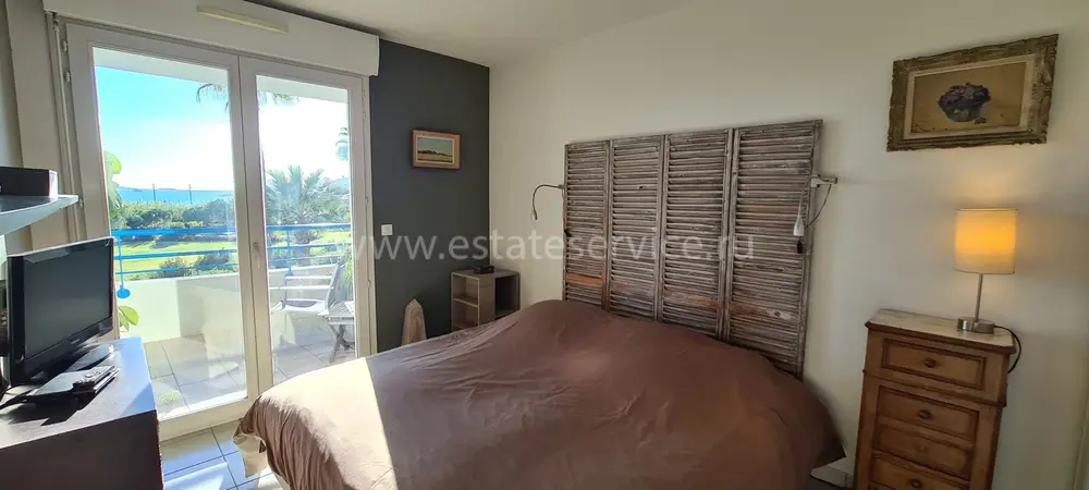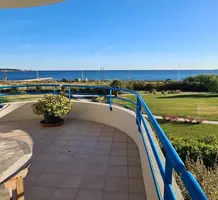 Ухоженная квартира на втором (2/4) этаже безопасной резиденции с консьержем, бассейном и видеонаблюдением напротив песчаного пляжа. Жилая площадь 50.6 m² - прихожая 8 m², гостиная 27.7 m² с открытой кухней выходят на удобную угловую террасу - вид на море от Cap D'Antibes до Теуль-сюр-Мер, большая спальня 10.8 m², душевая комната и отдельный санузел. Коммунальные платежи 150 €, годовой налог 895 €.