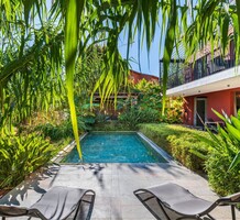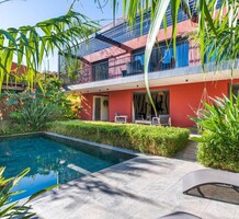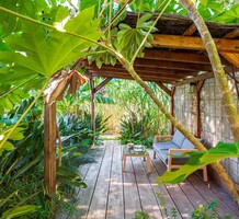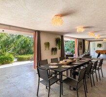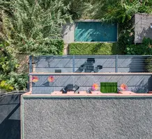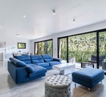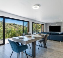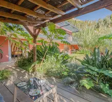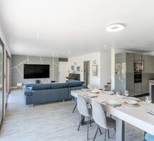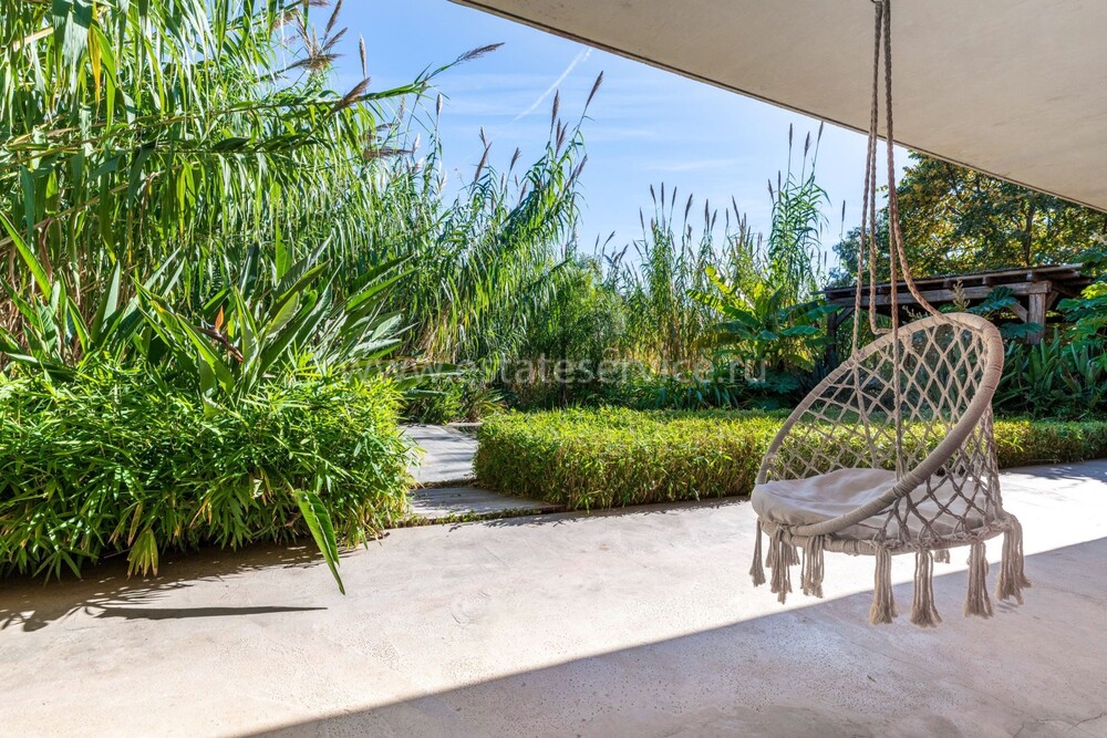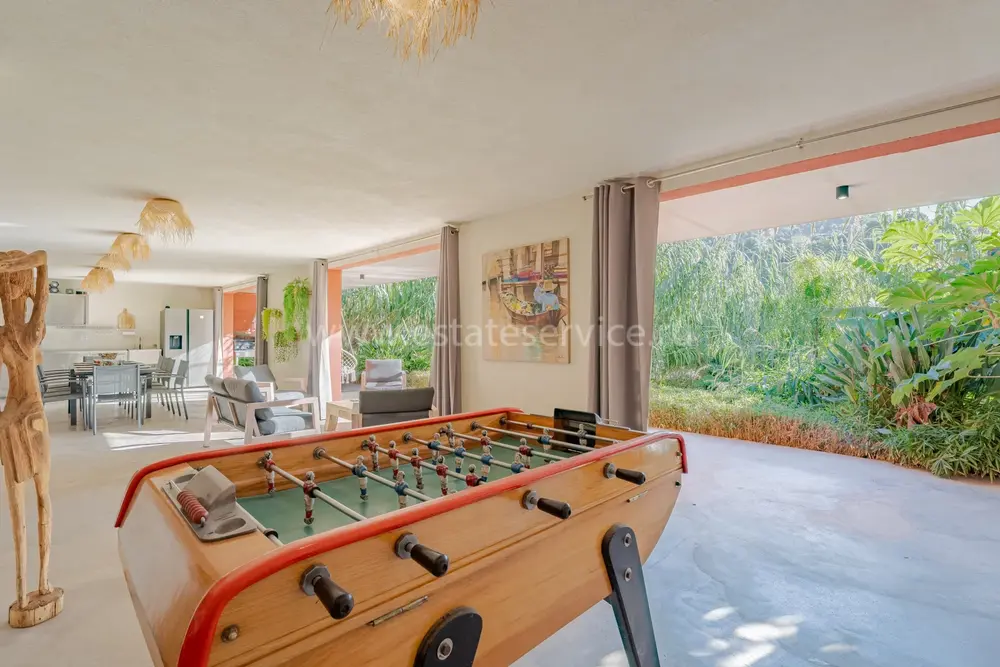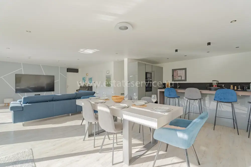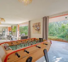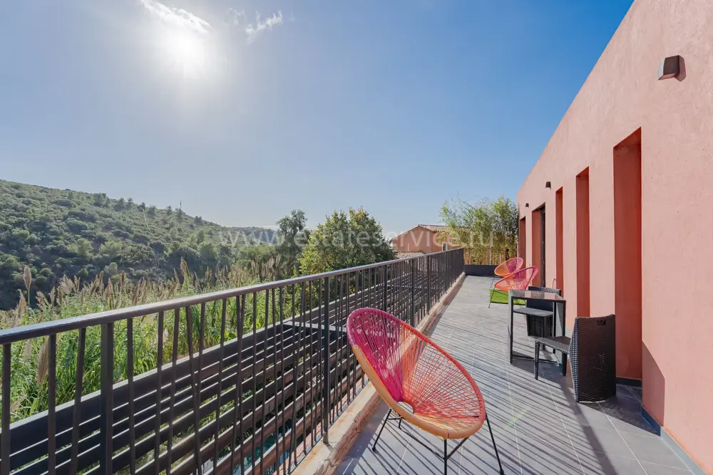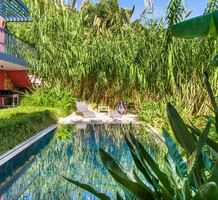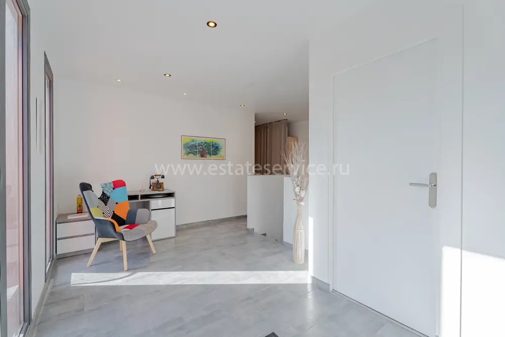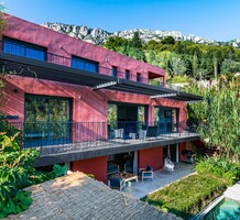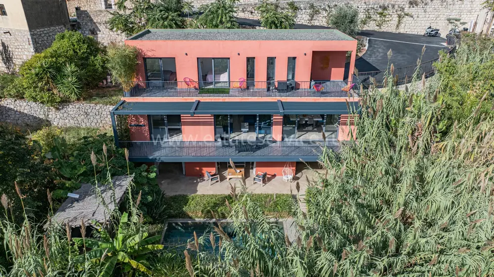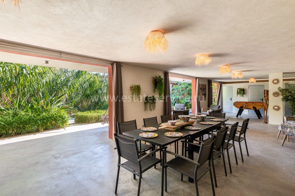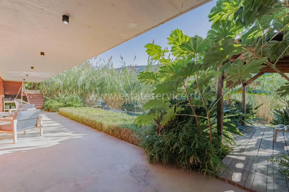 Стильная вилла в балийском стиле с тихим уединённым расположением в Saint-Laurent-d'Èze. Жилая площадь 153 m² + закрытый гараж и террасы, прилегающий участок 1.080 m² с пышным садом и бассейном. В доме - прихожая, светлая гостиная-столовая с открытой кухней и террасой - небольшой проблеск моря, три спальни, главная с ванной комнатой (ванная + душ) и гардеробной, прачечная, отдельный туалет и летняя гостиная 75 м² на уровне сада - можно переделать/использовать под спальни, игровую комнату, домашний кинотеатр или тренажерный зал. Годовой налог 2.616 €.