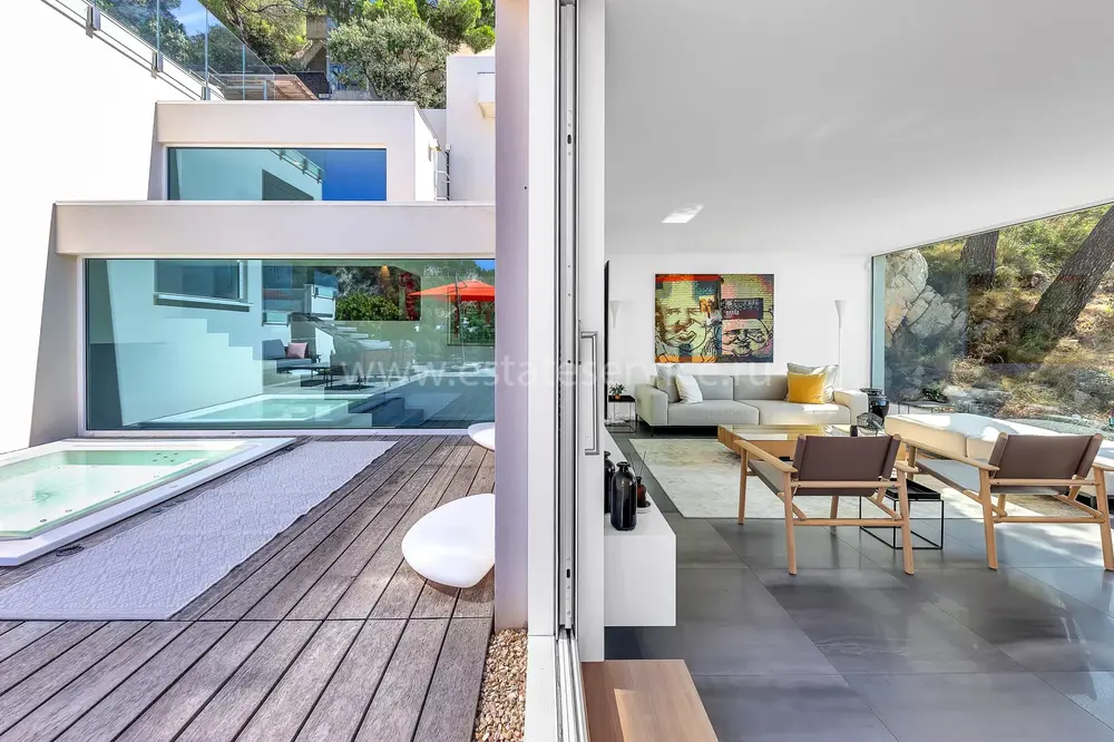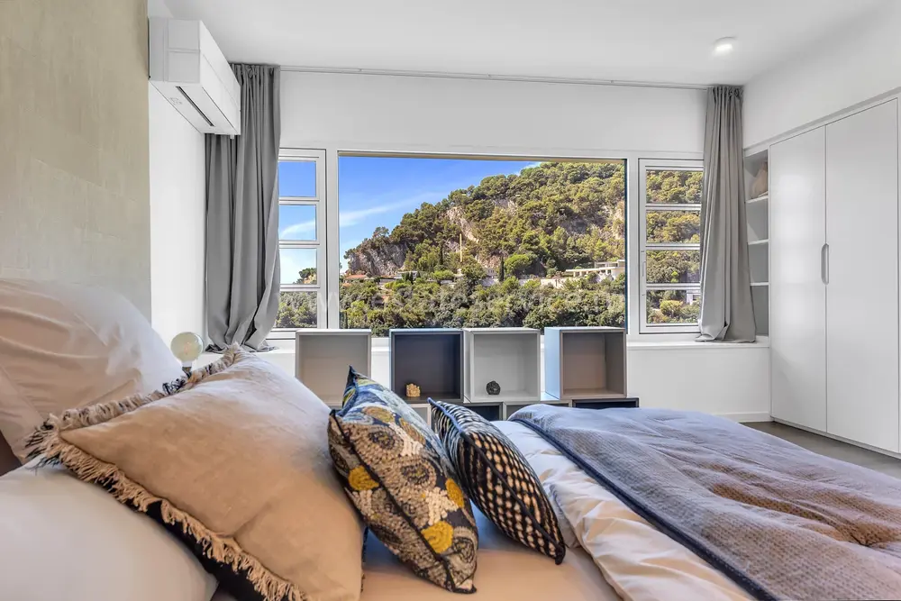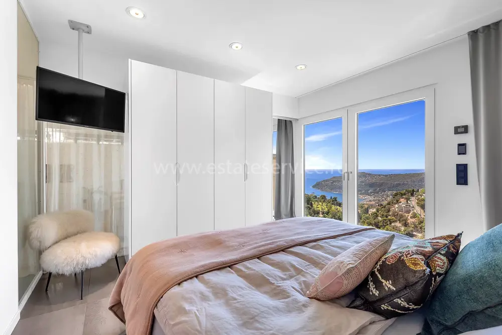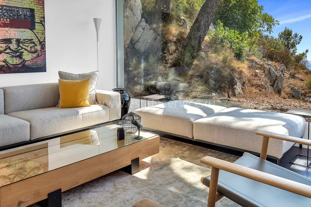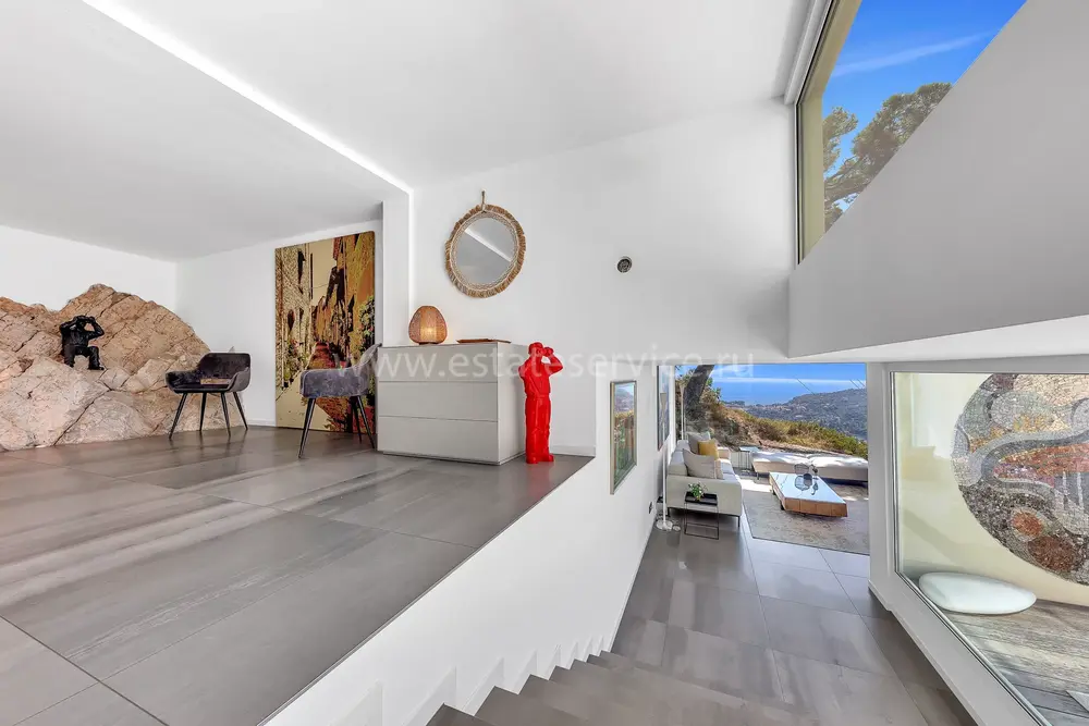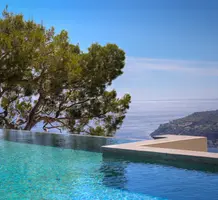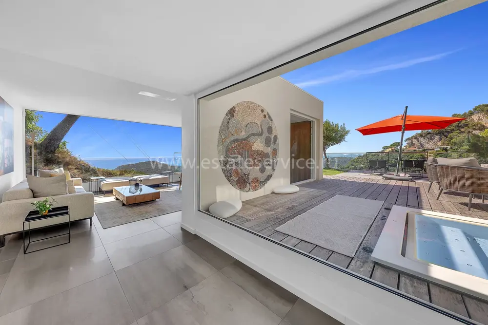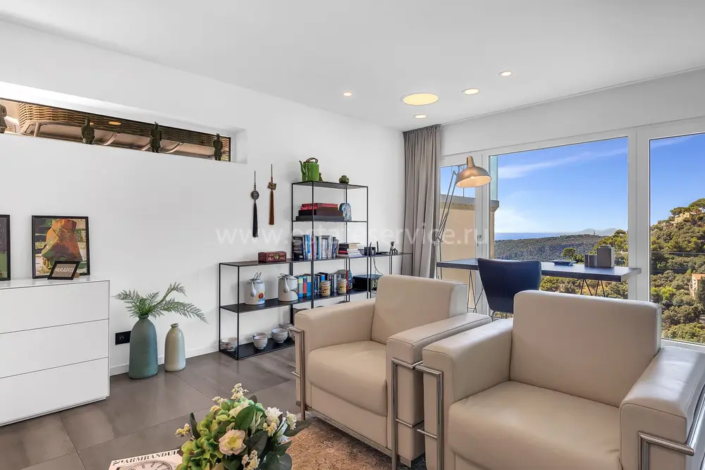 Роскошное владение в престижном закрытом (доступ на панорамном лифте высеченном в скале) районе в 16-ти километрах от аэропорта Ниццы. Жилая площадь 293 m², земельный участок 4.467 m². На первом уровне светлая и просторная гостиная с подвесным камином и видом на Saint-Jean-Cap-Ferrat, обеденная зона с кухней открытой планировки и выходом на террасу 60 m², пять спален, включая две большие люкс, одна из которых с кабинетом. Шикарная отделка, пейзажный бассейн с подогревом, джакузи, террасы в тени сосен, несколько парковочных мест, фитнес-зона с залом для йоги. Идеальное место для сочетания комфорта, спокойствия и эксклюзивности. Годовой налог на имущество 6.295 €.