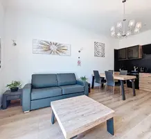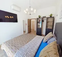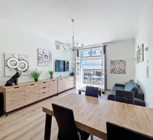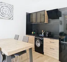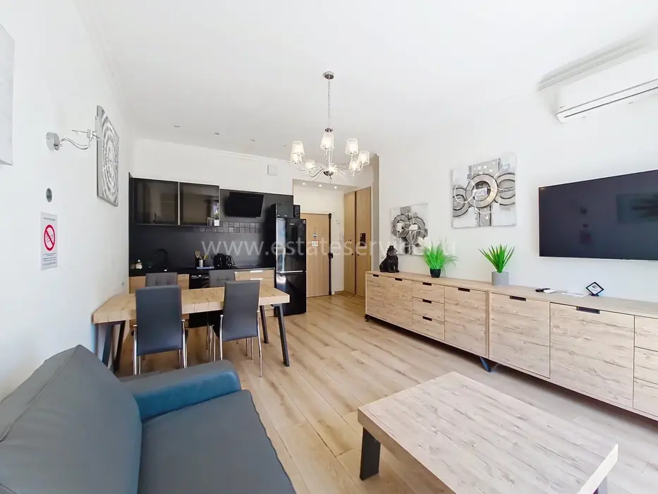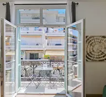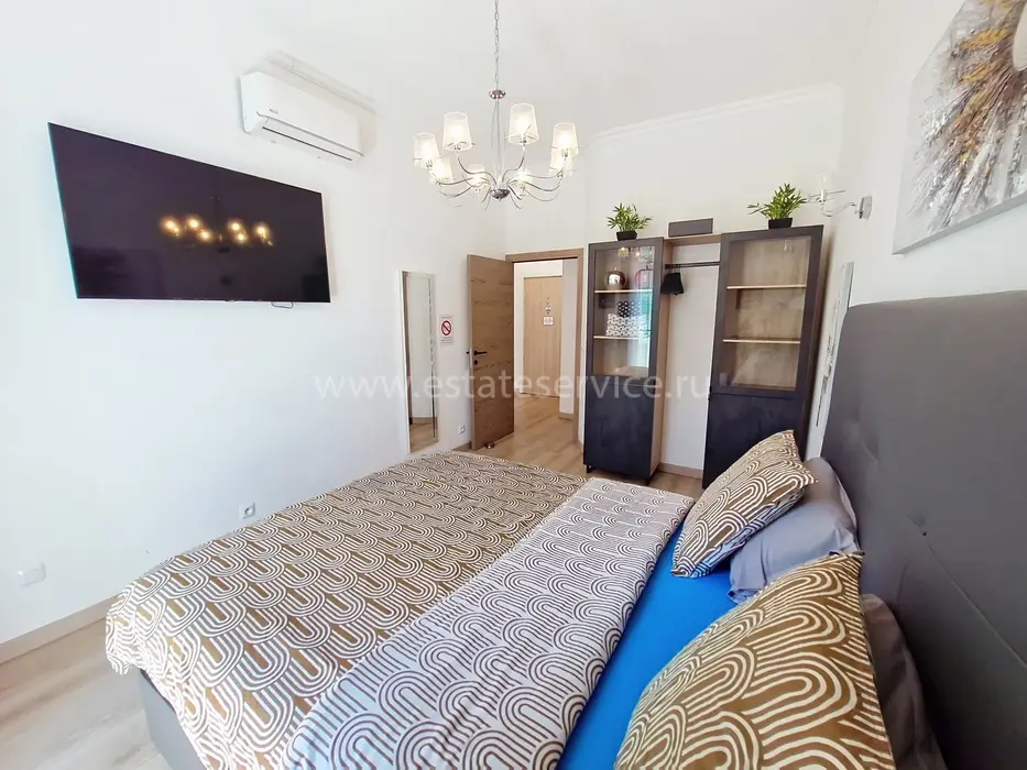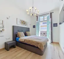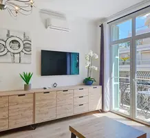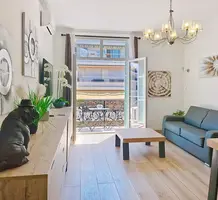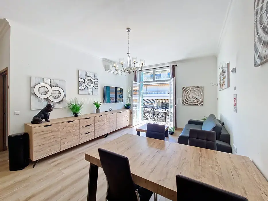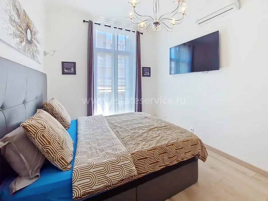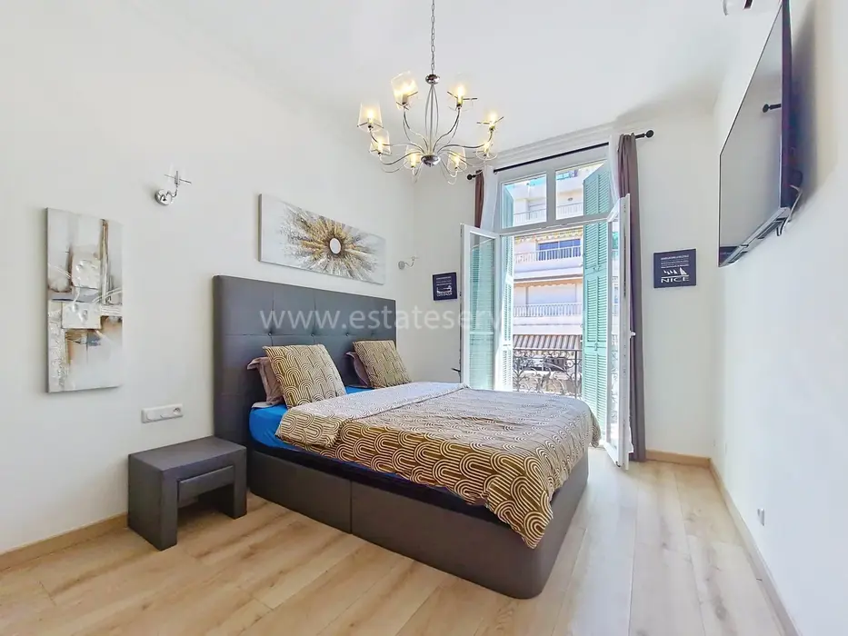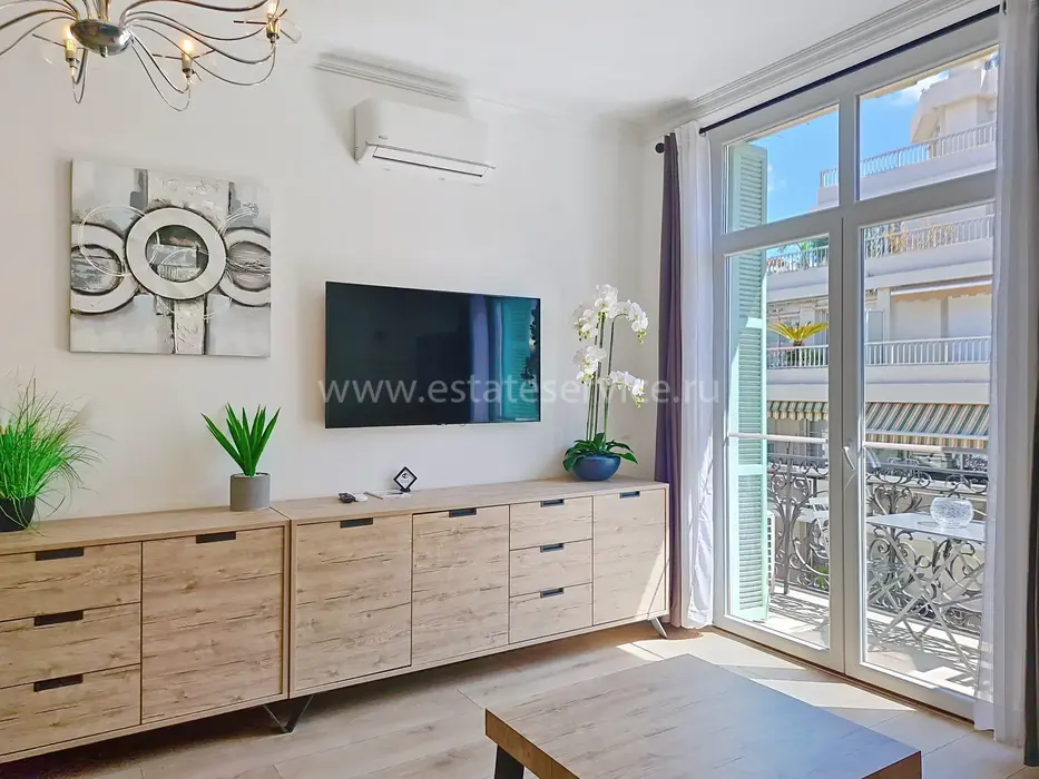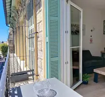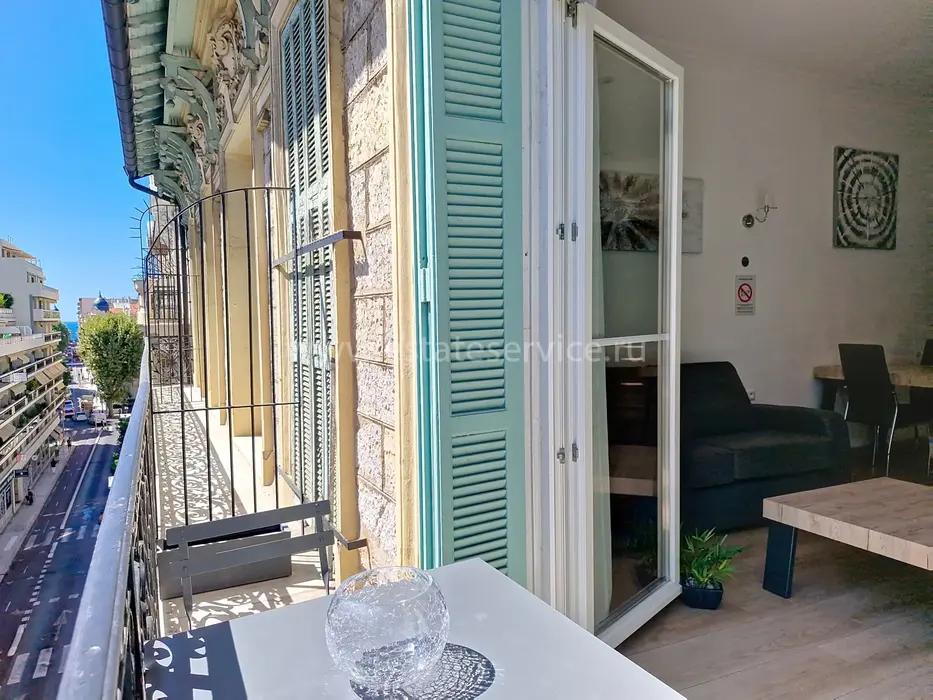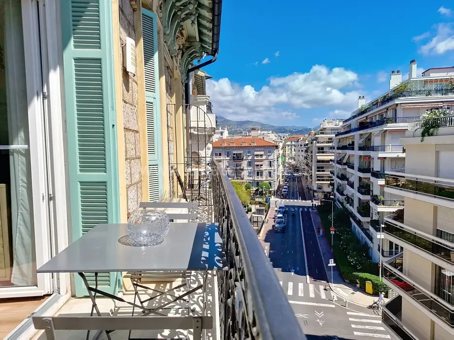 Со вкусом отремонтированная квартира на пятом (предпоследнем) этаже буржуазного здания с лифтом возле бульвара Виктора Гюго и 10 минутах ходьбы (550 метров) от Английской набережной и моря. Общая площадь 48 m² (жилая 44.7 m²) - прихожая с гардеробной, гостиная с кухней и большая спальня выходят на балкон, элегантная душевая с подвесным туалетом. Качественная отделка, высокие потолки, кондиционер, можно приобрести с мебелью.