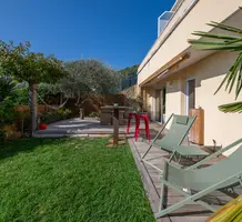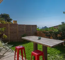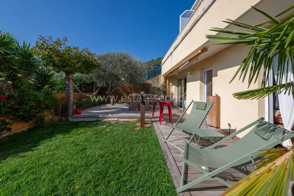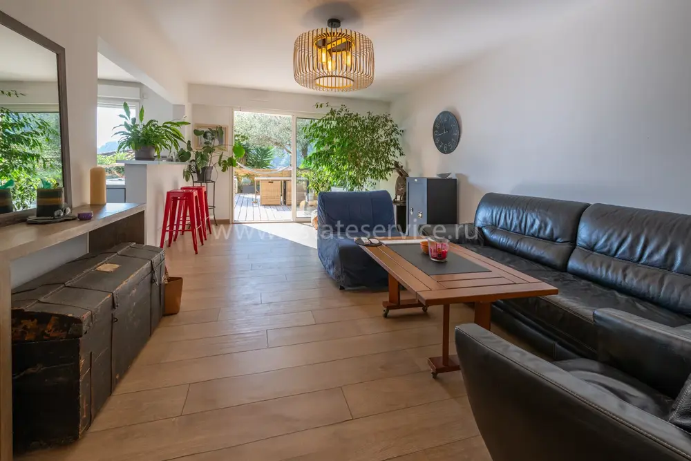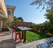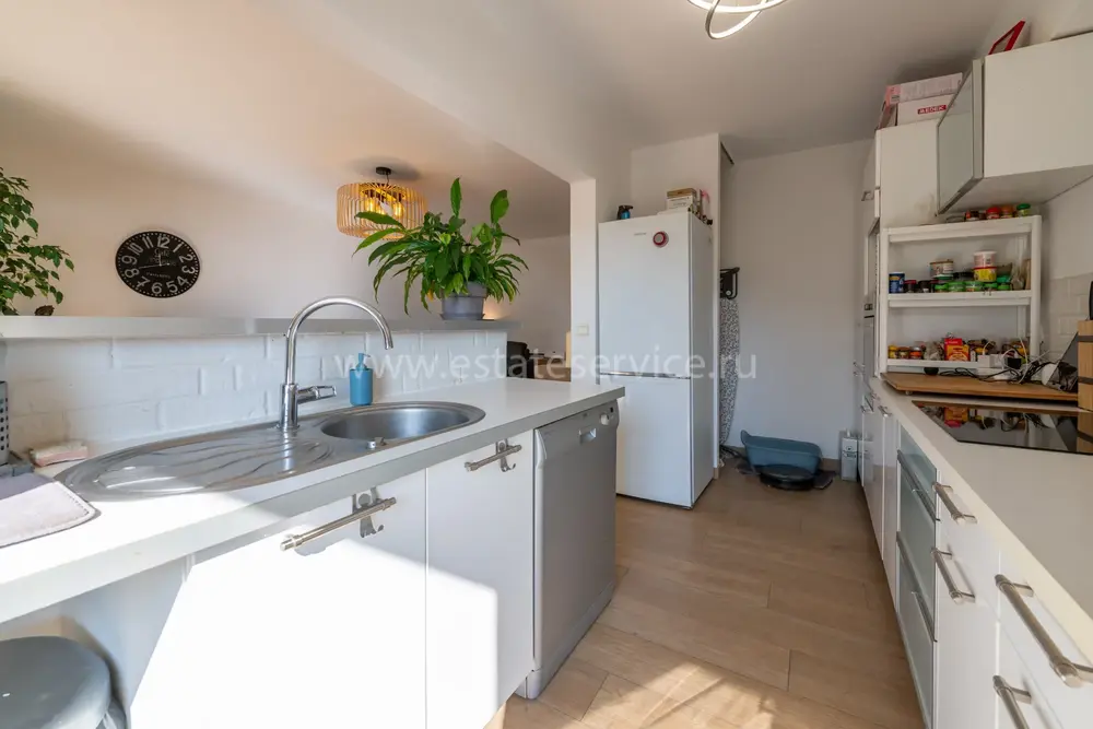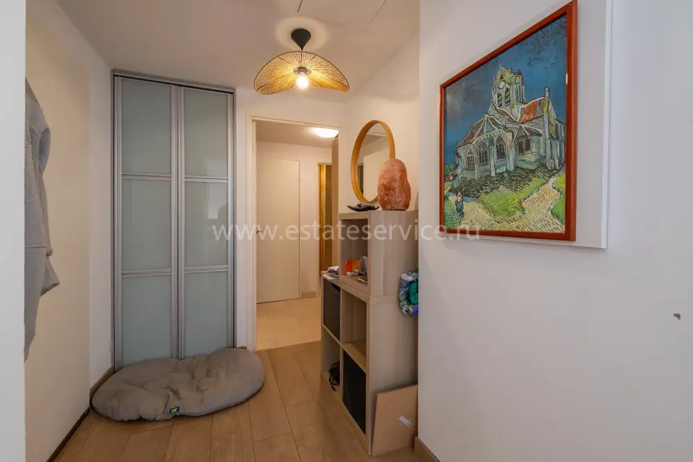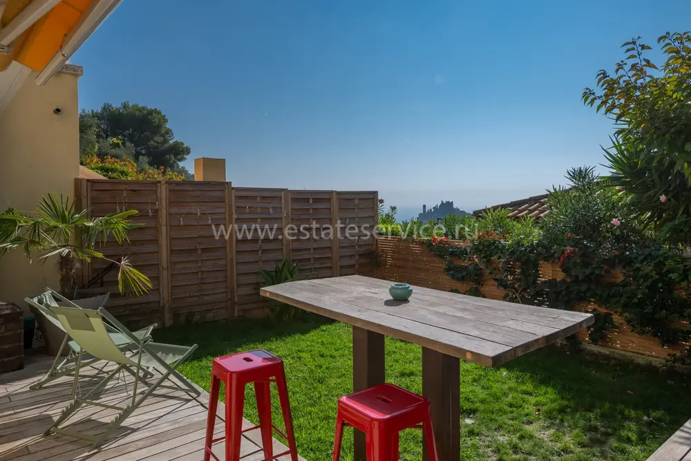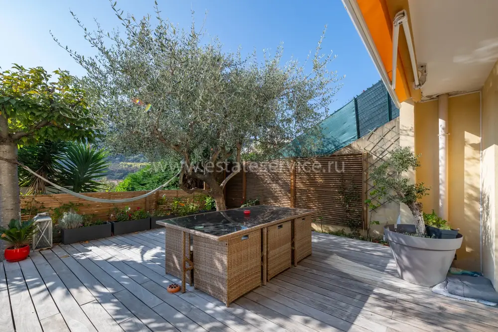 Семейные апартаменты в тихой безопасной резиденции с садом и бассейнами поблизости от поселка Eze village. Жилая площадь 70.9 m² - прихожая, гостиная-столовая 24.5 m² с примыкающей кухней 9.3 m² выходит на большую террасу 62.5 m² с ухоженным садиком - есть небольшой проблеск моря, две спальни 11.7 и 12.4 m² одна со своей террасой 3.7 m², две душевые и туалет. Отличное состояние, включён большой гараж. Коммунальные платежи 219 €, годовой налог 1.382 €.