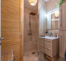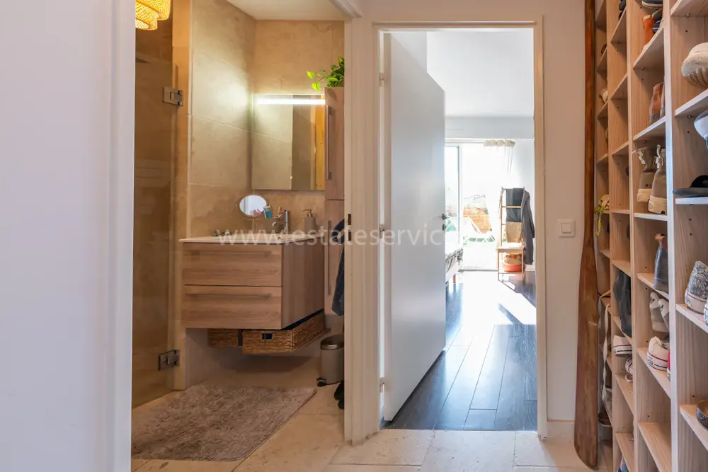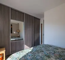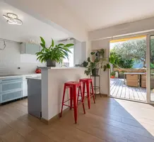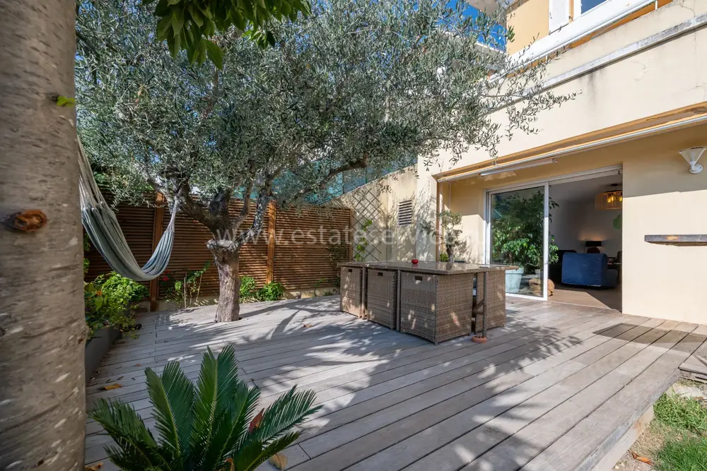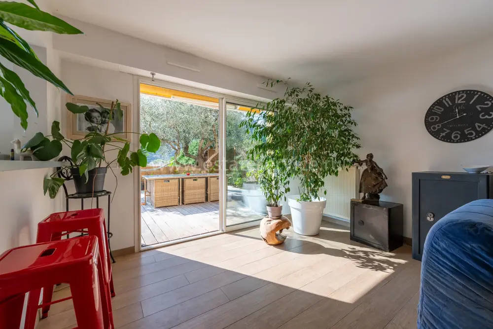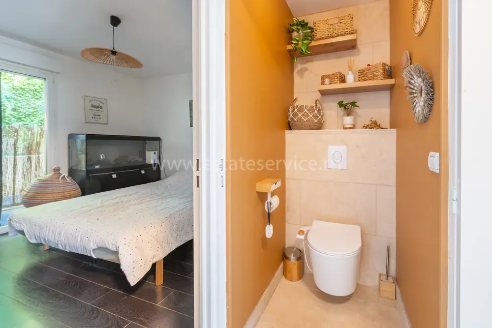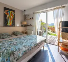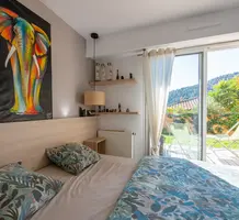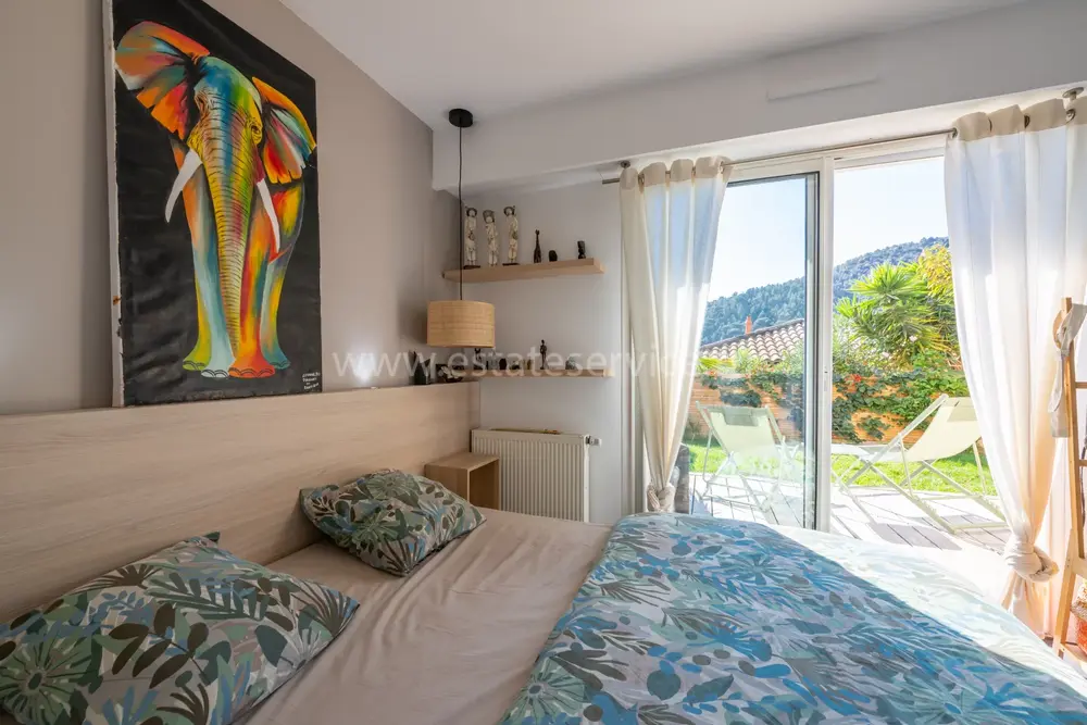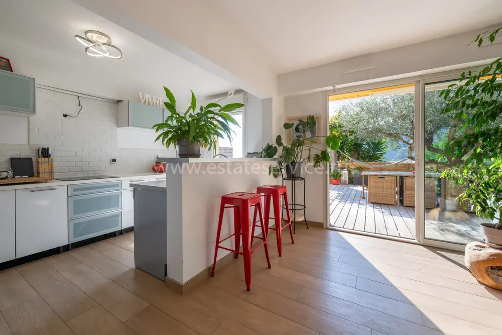 Семейные апартаменты в тихой безопасной резиденции с садом и бассейнами поблизости от поселка Eze village. Жилая площадь 70.9 m² - прихожая, гостиная-столовая 24.5 m² с примыкающей кухней 9.3 m² выходит на большую террасу 62.5 m² с ухоженным садиком - есть небольшой проблеск моря, две спальни 11.7 и 12.4 m² одна со своей террасой 3.7 m², две душевые и туалет. Отличное состояние, включён большой гараж. Коммунальные платежи 219 €, годовой налог 1.382 €.