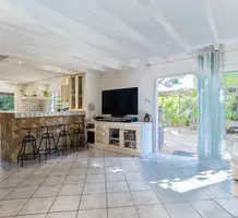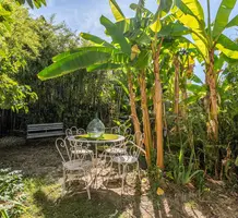 Уютная вилла в безопасном кондоминиуме в 2-х минутах ходьбы от детского сада/начальной школы Moretti, пяти минутах от магазинов и больницы L'Archet и 15-ти минутах от аэропорта. Жилая площадь 110 m², на первом уровне прихожая с гардеробной, душевая с туалетом и большая гостиная 52 m² с кухней, выходящие на террасу и тропический сад. На втором этаже (можно подняться как по внутренней, так и по внешней лестнице) разместились три спальни 8.9, 11.2 и 11.6 m², одна из которых с верандой 4.7 m² - приятный вид на горы, душевая (отремонтирована) с туалетом и прачечная. На участке 510 m² разбит ухоженный сад, есть садовый сарай, место под бассейн, джакузи, детскую площадку или оставить всё как есть для любителей садоводства и огородничества. Потребуется некоторое обновление, дом подключен к центральной канализации, большая парковка на 5 автомобилей. Годовой налог 1.140 €.