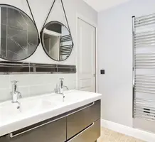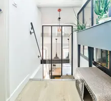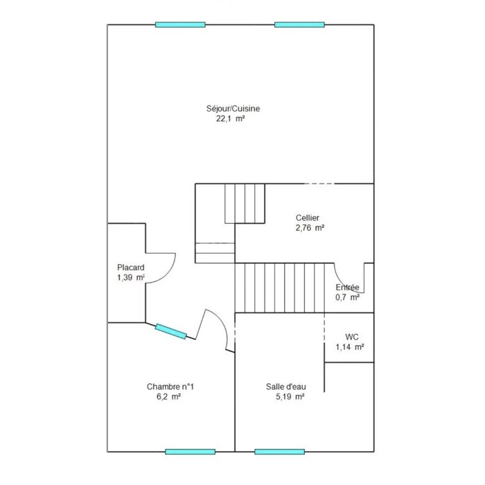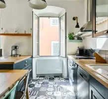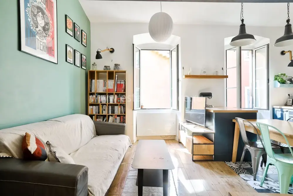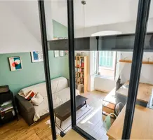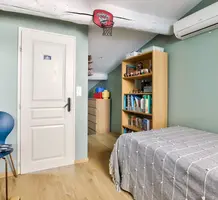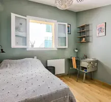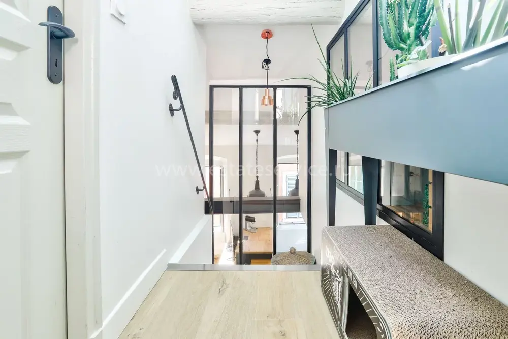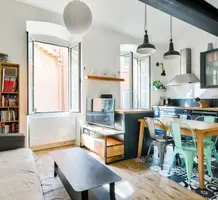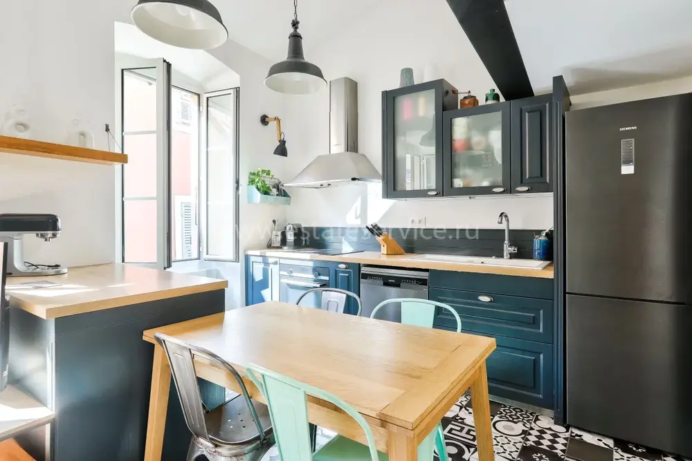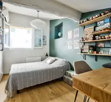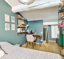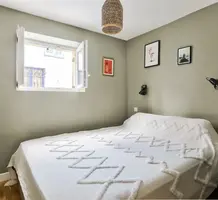 Двухуровневая квартира занимающая верхний этаж небольшого таунхауса недалеко от пляжа, школы, магазинов/ресторанов и вокзала SNCF. Общая площадь 74.3 m² (жилая 63 m²) - прихожая, гостиная с открытой кухней и прилегающей кладовой, спальня и душевая комната с туалетом, наверху по лестнице - ещё две отдельные спальни. Отличное состояние, высокие потолки, пешая доступность всех удобств. Коммунальные платежи всего 20 €, годовой налог 737 €.