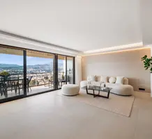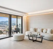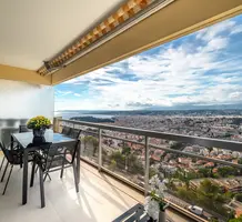 Квартира с ремонтом на верхнем (седьмом) этаже резиденции в престижном секторе рядом с автобусными остановками и магазинами Col de Villefranche. Общая площадь 94.6 m² (жилая 83 m²) - прихожая с гардеробной, просторная гостиная 43 m² с островной кухней выходит на панорамную террасу 11.6 m², две спальни 11 и 13 m² и две душевые с подвесными туалетами. Шикарная отделка, включены большая кладовая и закрытый гараж. Коммунальные платежи 207 €, годовой налог 2.100 €.