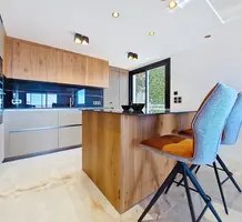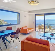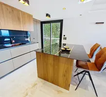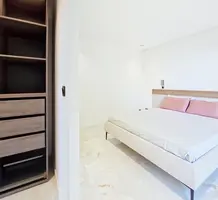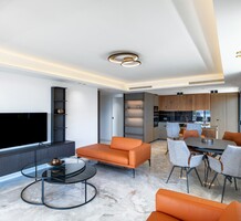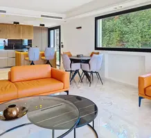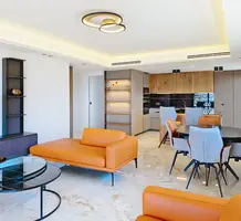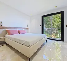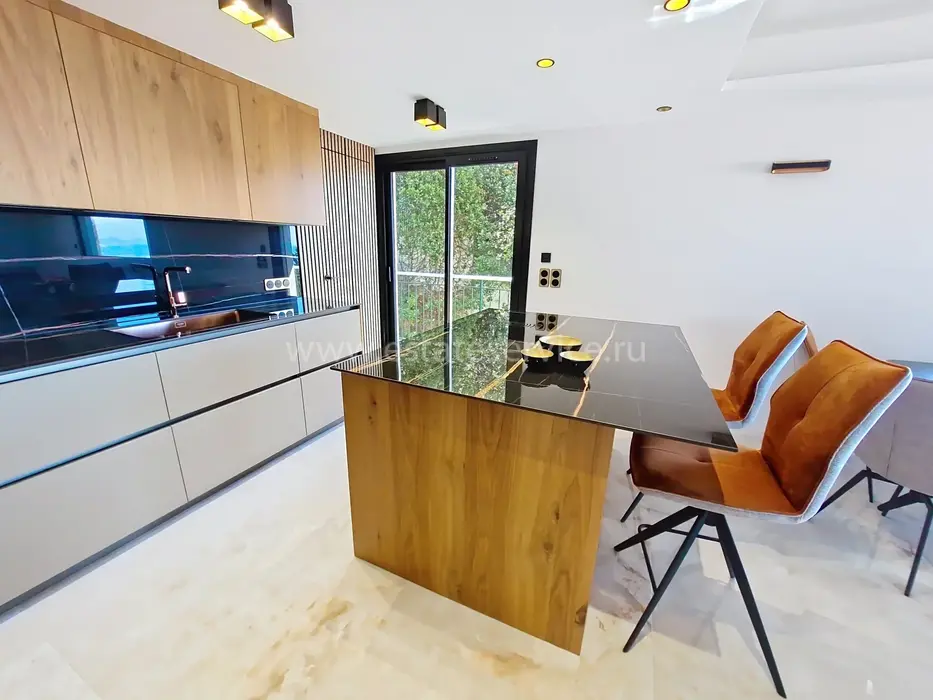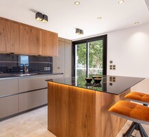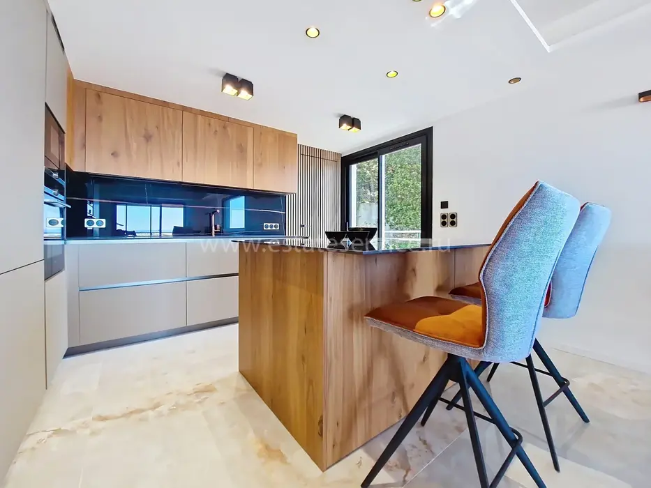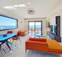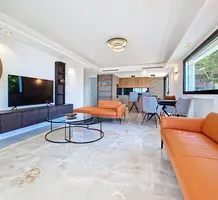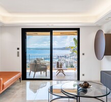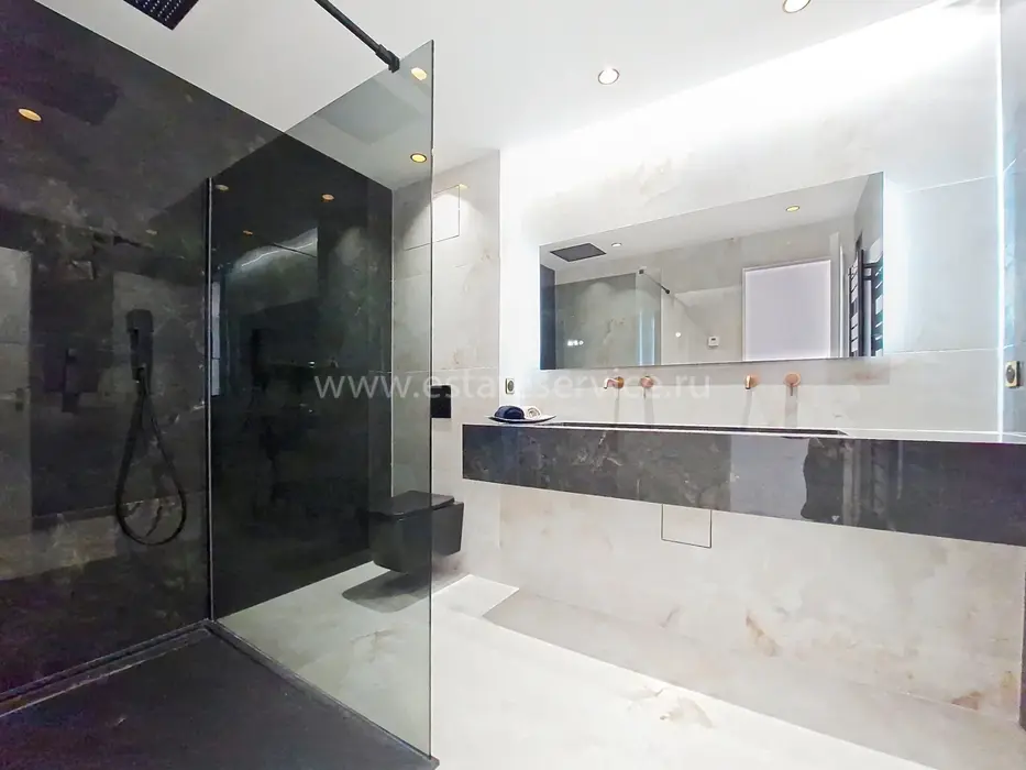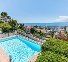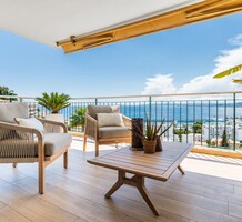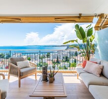 Апартаменты с ремонтом на третьем (3/6) этаже закрытой резиденции с бассейном возле международной школы и 15-ти минутах ходьбы от моря и пляжа Coco Beach. Общая площадь 116 m² (жилая 85.2 m²) - прихожая 5.3 m², гостиная 36.5 m² с островной кухней и выходом на террасу 26.3 m², две спальни 10.7 и 12.2 m² со своими душевыми, гардеробными и балконом а также отдельный санузел с раковиной. Автобусная остановка у подножия дома, есть крытый паркинг, кладовая. Коммунальные платежи 436 €, годовой налог 2.284 €.