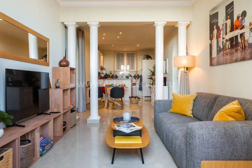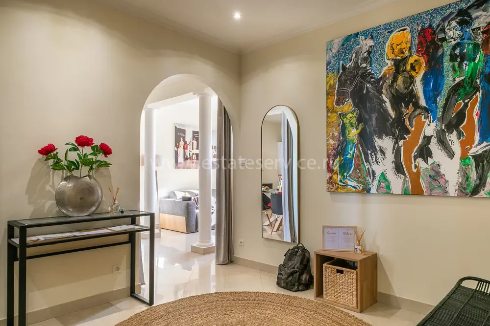 Квартира на третьем этаже исторического кондоминиума с лифтом, консьержем, зимним садом и видеонаблюдением. Жилая площадь 71 m² - прихожая 10.4 m² с гардеробной, гостиная 25 m² с боковым видом на море, примыкающая кухня 6.7 m², две спальни 11.7 и 12.5 m², ванная комната с туалетом. Элегантная отделка, открытая парковка, можно сдавать в аренду. Коммунальные платежи 170 €, годовой налог 1.330 €.
