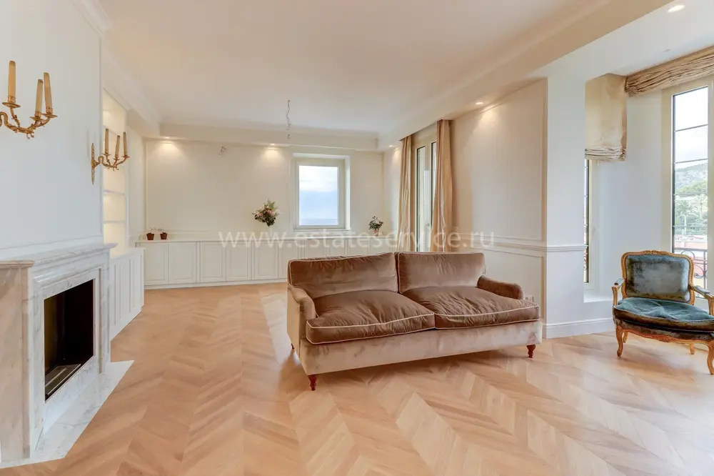 Полностью отремонтированная квартира на 4-м (предпоследнем) этаже престижной буржуазной резиденции с лифтом в пяти минутах от Монако. Общая площадь 107 m² (жилая 99 m²) - прихожая 10.7 m² с гардеробной, светлая гостиная 38 m² с камином и балконом, отдельная кухня 14 m² со своим балконом, 13.6 m², две спальни 13 и 13.4 m², главная со своей душевой/туалетом, вторая - с третьим балконом, общая душевая комната с биде и туалетом. Шикарная отделка и материалы, приятный вид на море, подземный паркинг. Коммунальные платежи 166 €, годовой налог 904 €.