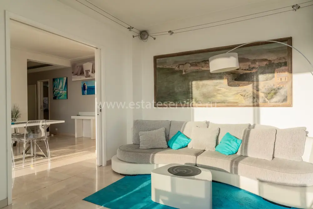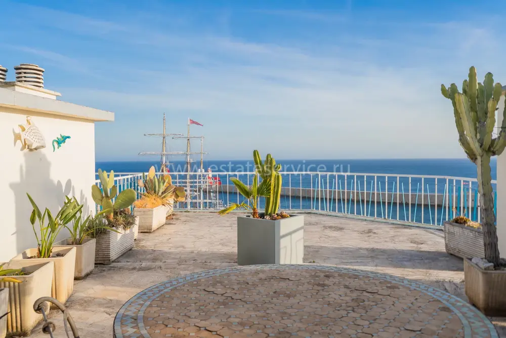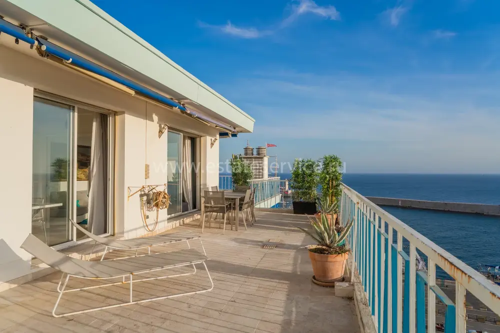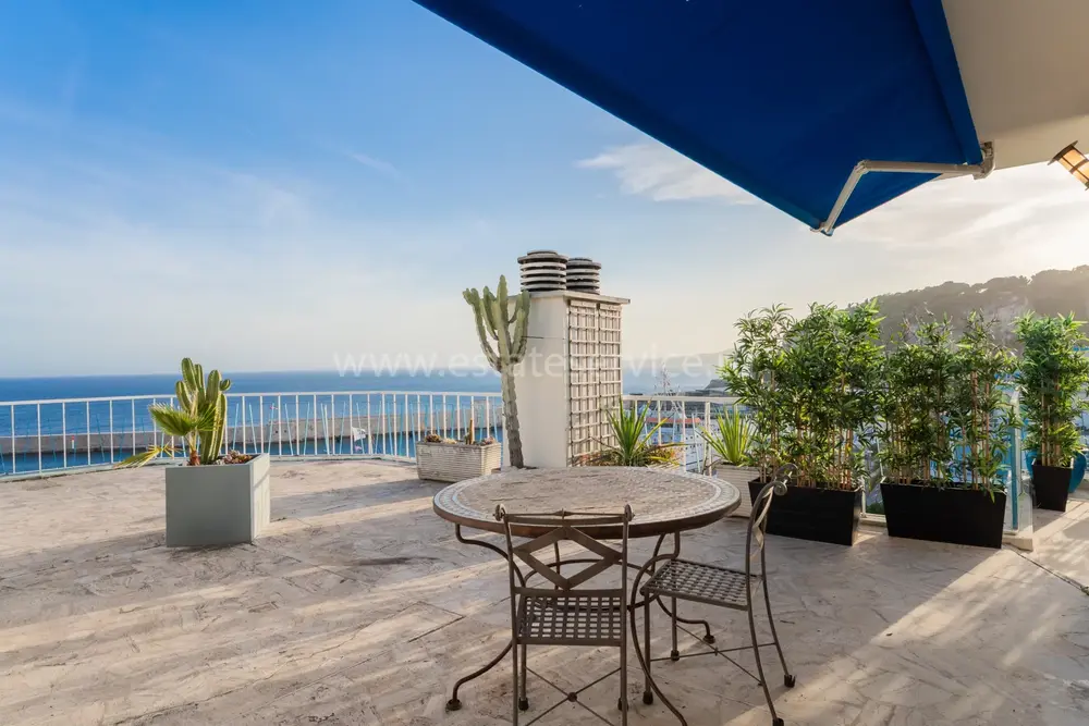 Панорамные апартаменты на верхнем (седьмом) этаже закрытой резиденции с консьержем возле моря, порта и Parc Vigier. Общая площадь 225 m² (жилая 74.7 m²) - прихожая с гардеробной, просторная гостиная 36.6 m² с примыкающей столовой и выходом на террасы 150 m² по периметру квартиры, две спальни 10.7 и 12.8 m² и ванная комната с ванной, душем и туалетом. Хороший потенциал, включена кладовая, можно купить открытую парковку - 45.000 € или подземный паркинг - 60.000 €. Коммунальные платежи 400 €, годовой налог 2.806 €.