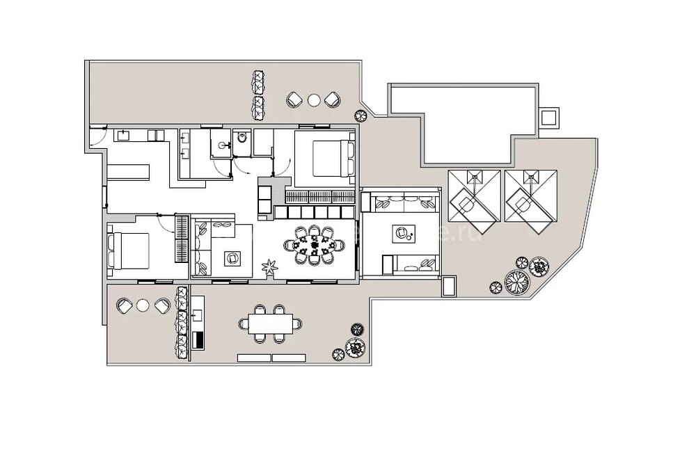 Есть терраса: 150 кв. м.