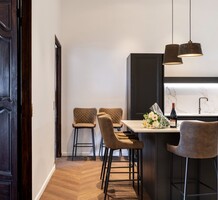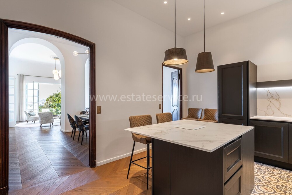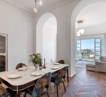 Полностью отремонтированная квартира в престижной резиденции с лифтом и ландшафтным садом недалеко от порта, Старого города и всех удобств. Жилая площадь квартиры 113 m² - прихожая, двойная гостиная-столовая, современная кухня островного типа, две спальни и две ванные комнаты. Высокие потолки с лепниной, шикарный вид на залив Ангелов , две просторные террасы, гараж и подземный паркинг. Коммунальные платежи 410 €.