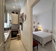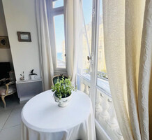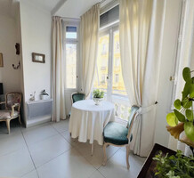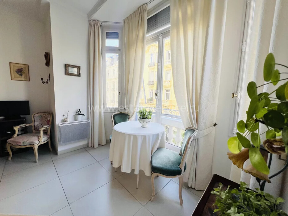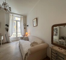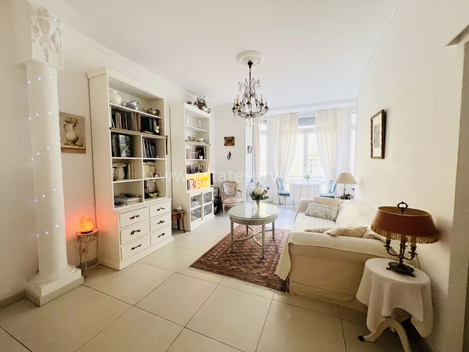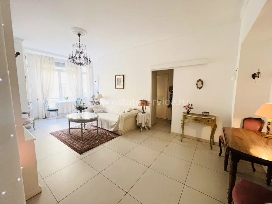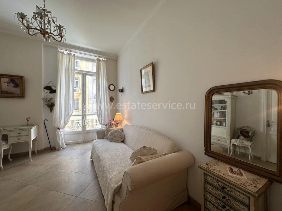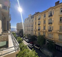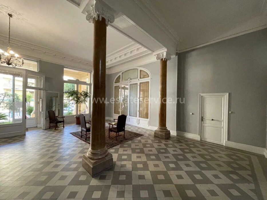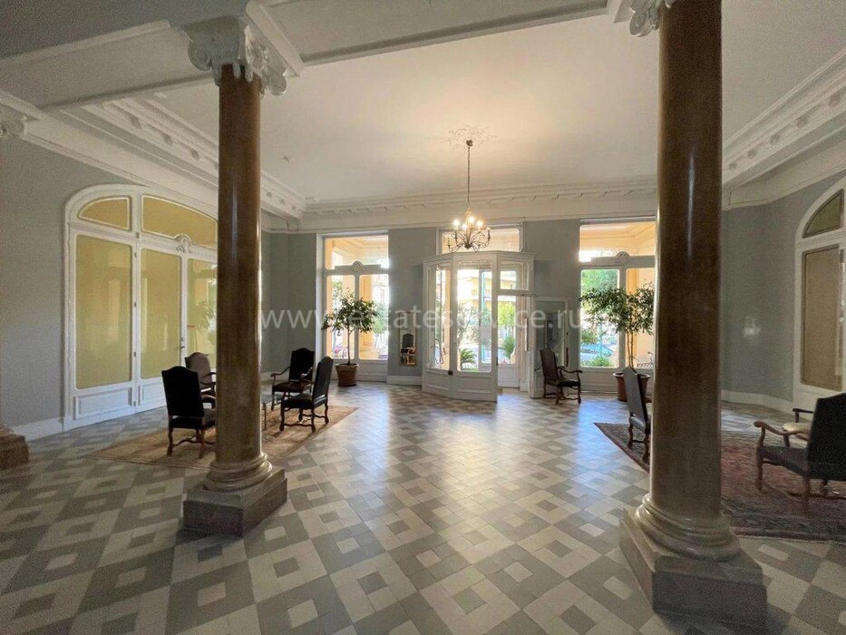 Апартаменты на третьем этаже шикарной резиденции Belle Epoque с лифтом и консьержем в центре Ментона. Общая площадь 86.6 m² (жилая 81.9 m²) - прихожая с гардеробной, гостиная 24.4 m², примыкающая кухня 5.9 m², две спальни 12.3 и 12.8 m², душевая с туалетом и три балкончика 1.2, 1.3 и 2.1 m² с боковым видом на море. Хорошее состояние, высокие потолки с лепниной, лифт. Коммунальные платежи 237 €, годовой налог 1.363 €.