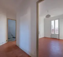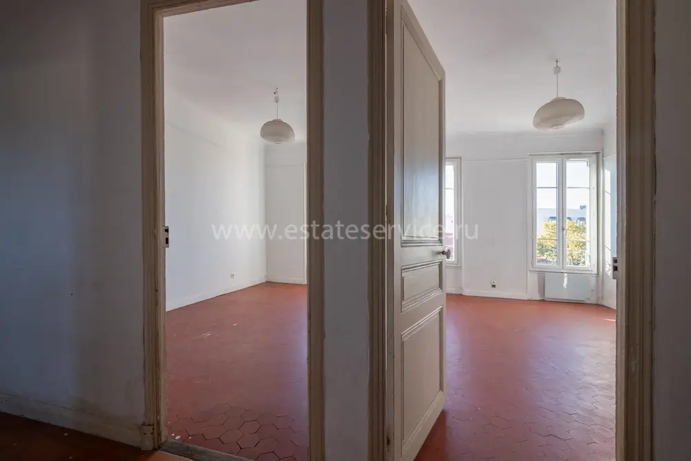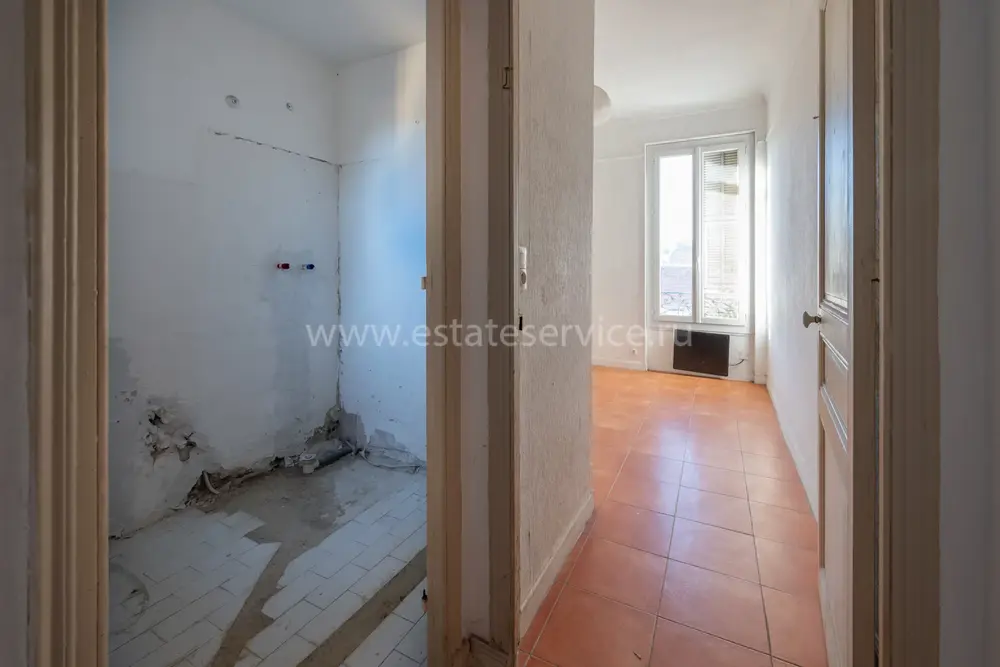 Квартира под ремонт на верхнем (пятом) этаже здания без лифта в районе торгового центра Nice TNL. Жилая площадь 57.8 m² - прихожая, светлая гостиная, отдельная кухня, две спальни и ванная комната с туалетом. Удобная планировка, высокие потолки, хороший потенциал.