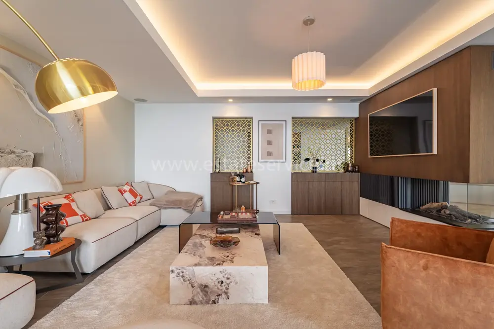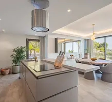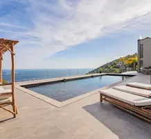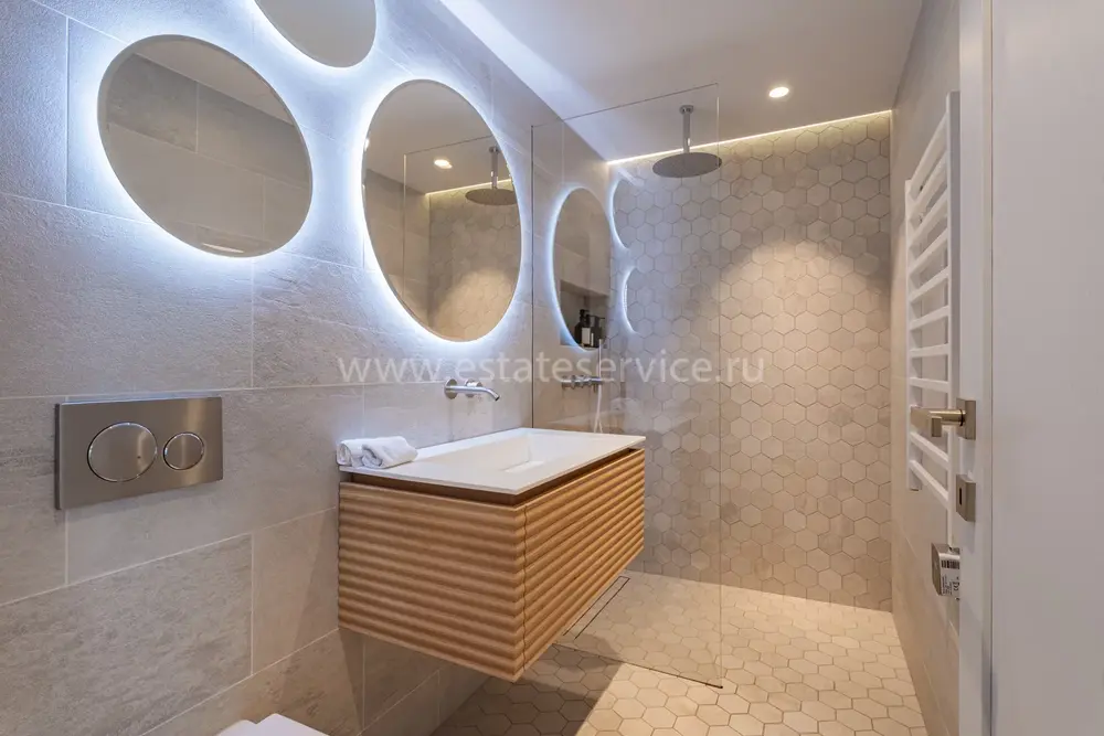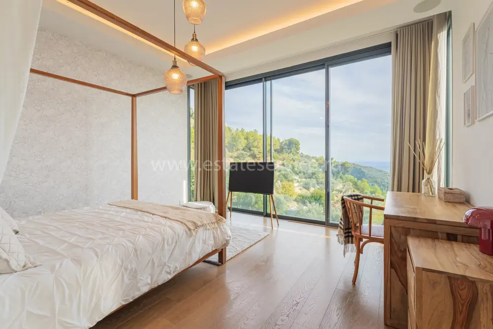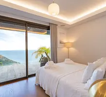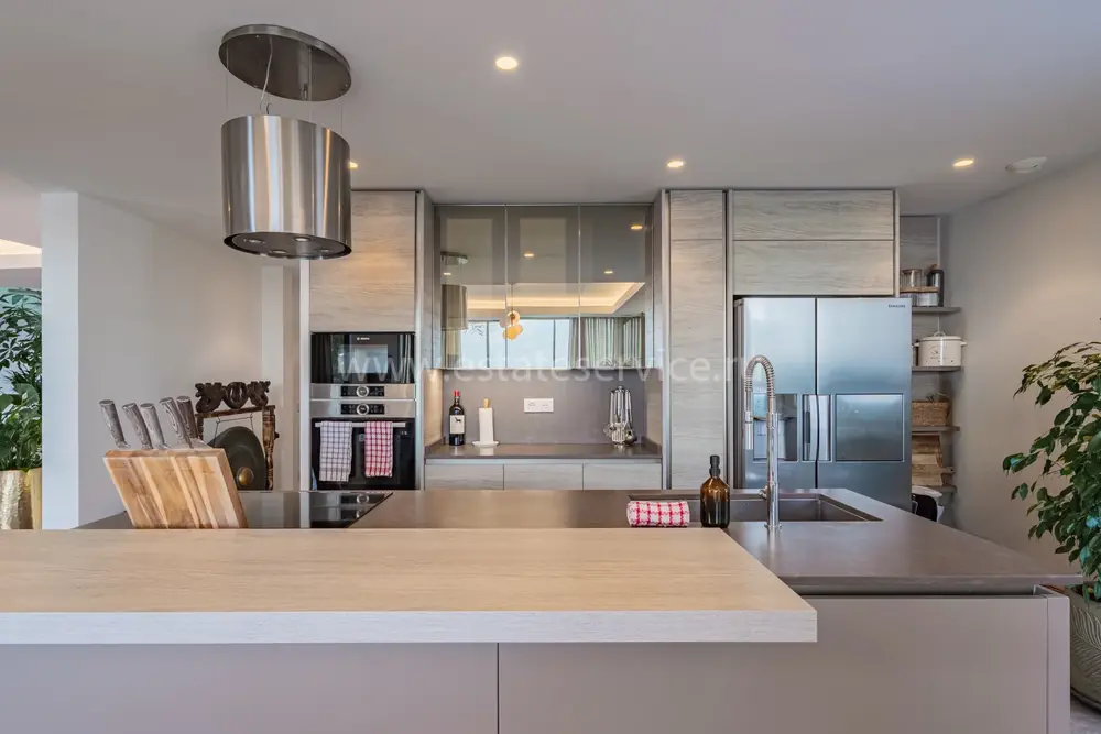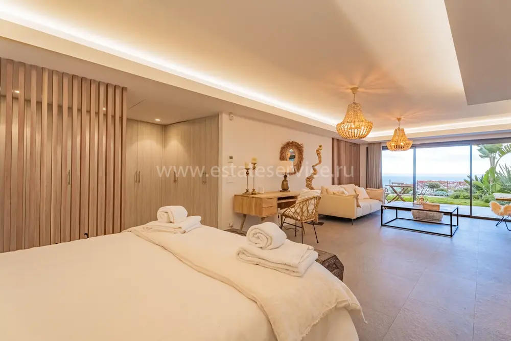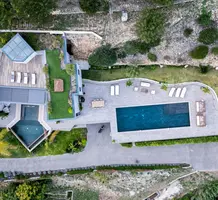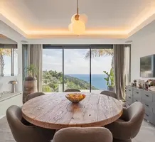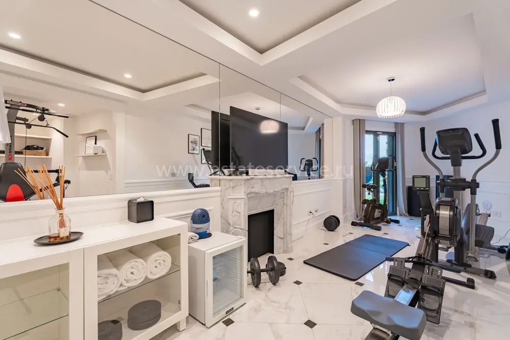 Современная вилла с невероятным морским видом и удобным расположением в престижном закрытом домене. Общая площадь 554 m² (жилая 484 m²) - тройная гостиная с бильярдной и столовой зонами, открытой островной кухней и выходом на террасу, пять больших спален с ванными комнатами, тренажерный зал, бар/дискотека, два бассейна, большой гараж, множество террас и подсобных помещений. Идеальное состояние, ухоженный сад, внутренний лифт и прочие удобства.