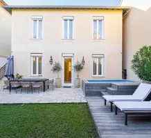 Очаровательная смежная вилла с удобным расположением поблизости от всей инфраструктуры. Жилая площадь 122 m², на первом уровне - двойная гостиная открытой планировки с примыкающей кухней и выходом в сад, а также гостевой туалет. На втором разместились три спальни, каждая со своей ванной/душевой комнатой и туалетом, главная с отдельной гардеробной. Ровный участок с лужайкой, небольшим надземным бассейном и шезлонгами, есть возможность (при наличии разрешения на проживание) парковки на улице рядом с домом. Качественные материалы, готов к заселению или для сдачи в аренду.