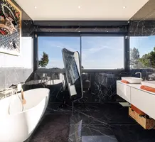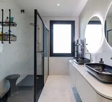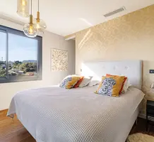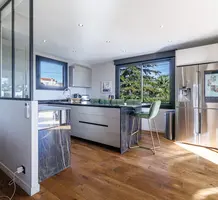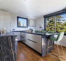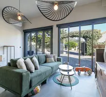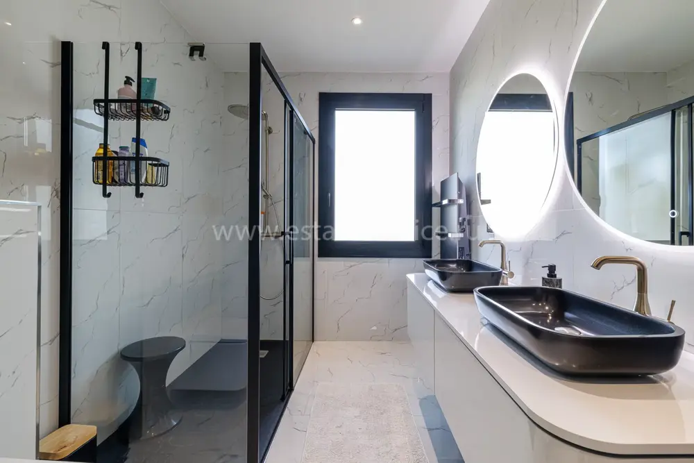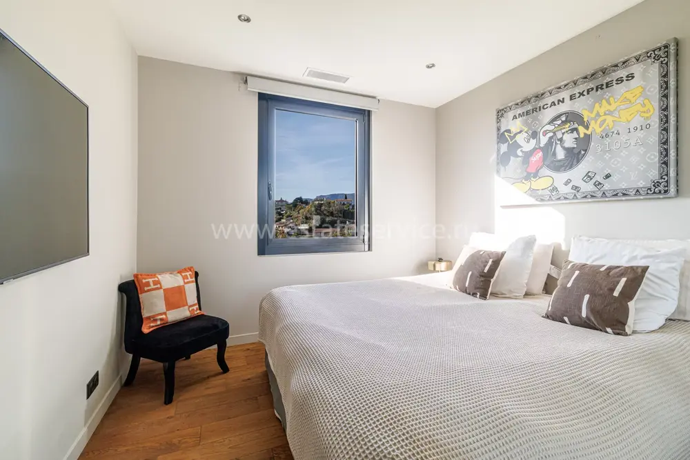 Стильная семейная вилла в тихом и зеленом месте в 20-ти минутах езды от международного аэропорта. Жилая площадь 142 m² , в доме - просторная гостиная с примыкающей кухней-столовой и выходом на террасу, три спальни, главная с собственной ванной комнатой и гардеробной, апартаменты 30 m² для гостей/персонала/сдачи в аренду на нижнем уровне. Качественная отделка, ровный ландшафтный сад с газоном и паркингом. Годовой налог на имущество 1.700 €.