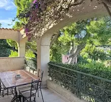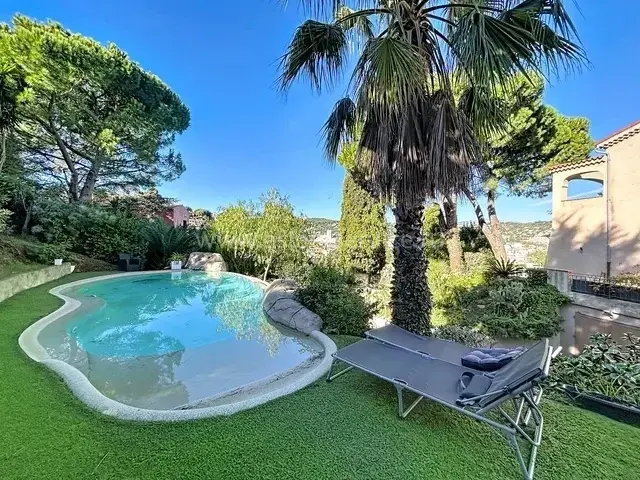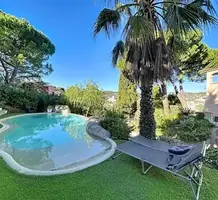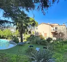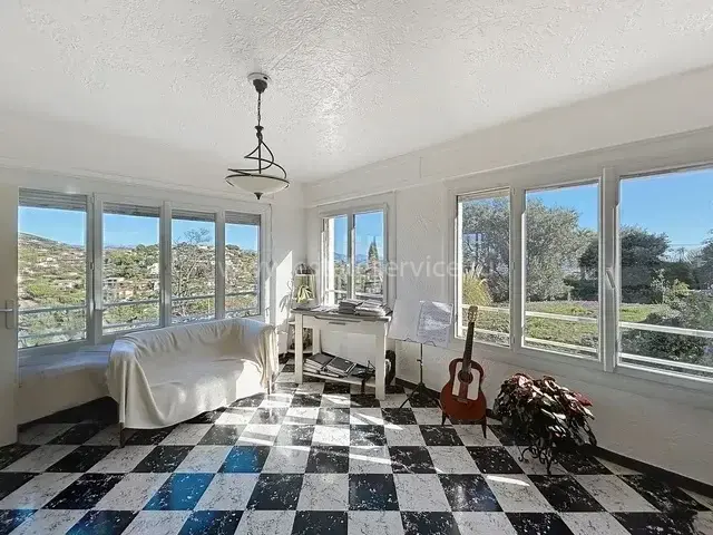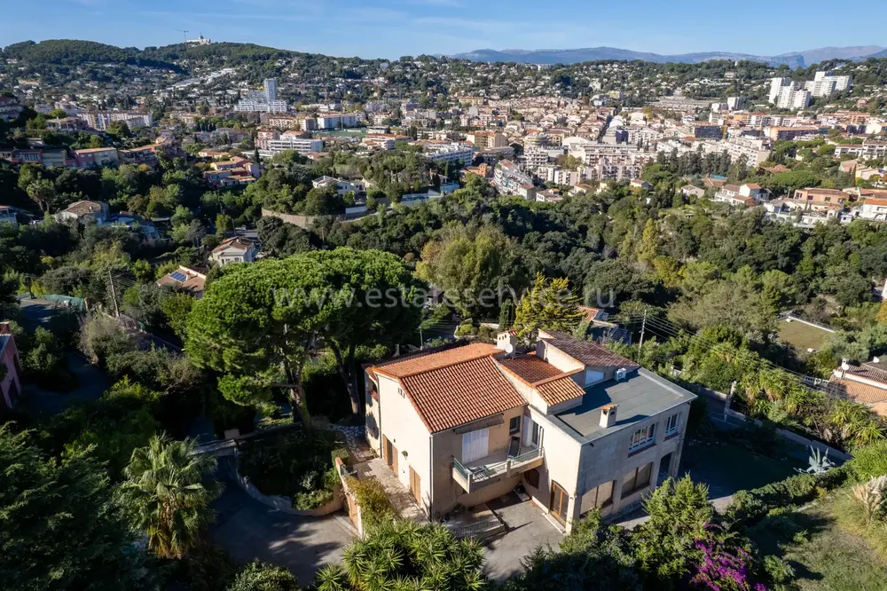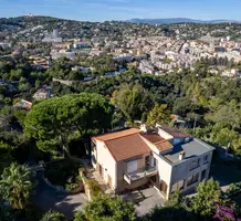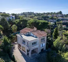 Вилла под обновление в зелёном резидентном квартале Super Cannes. Жилая площадь 200 m² + гараж, кабинет/мастерская и подвал, участок земли 2.045 m². В настоящее время дом разделен на два отдельных апартамента. На уровне сада - гостиная, кухня, две спальни, ванная комната с туалетом и веранды с выходом в сад. Наверху - светлая и просторная гостиная с камином, отдельная кухня, три спальни, главная с душевой и туалетом, общая ванная комната и панорамная терраса. Годовой налог 1.873 €.