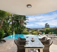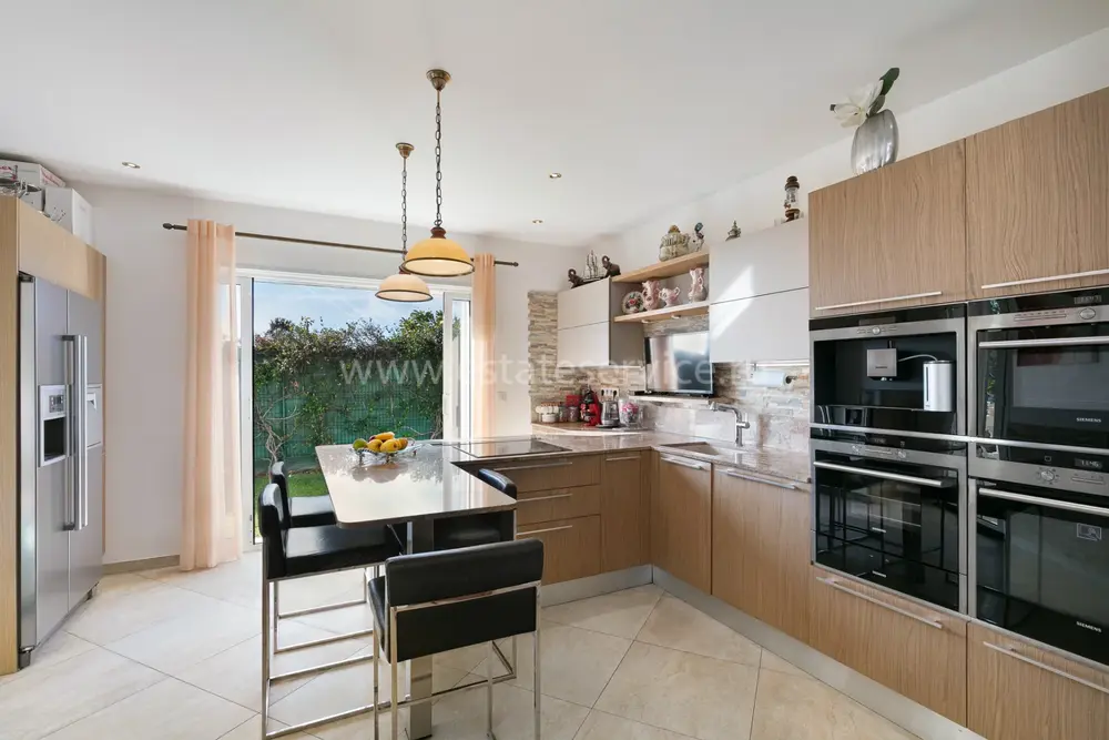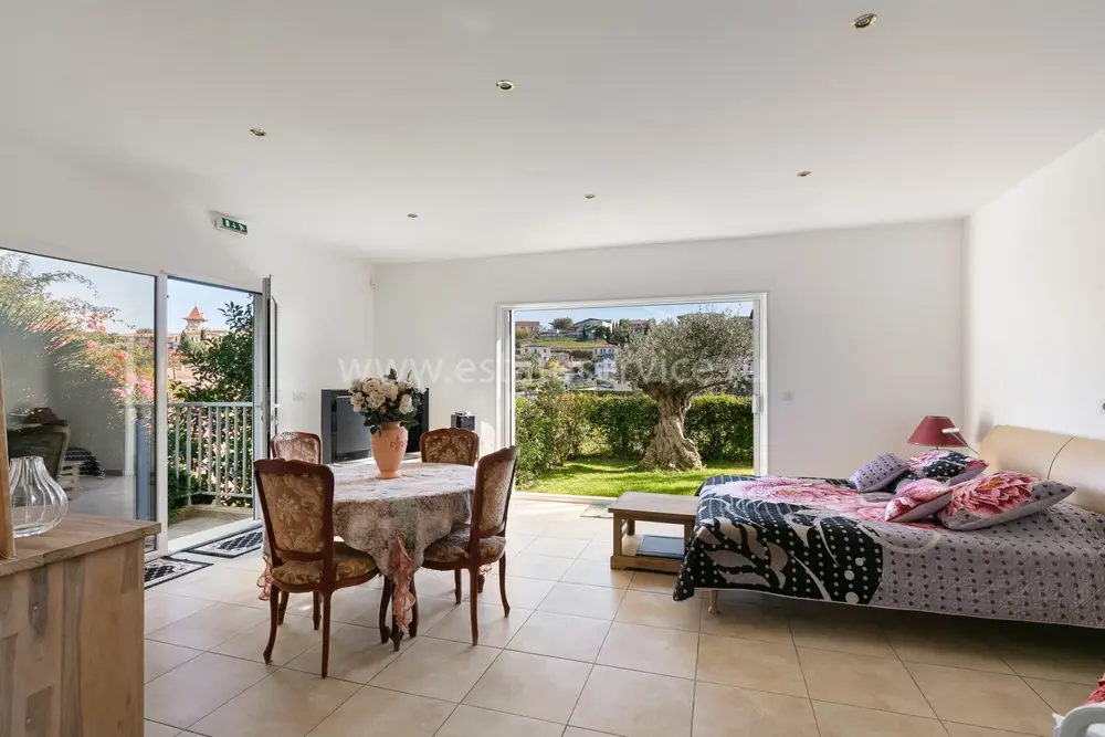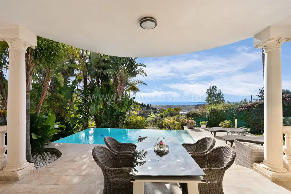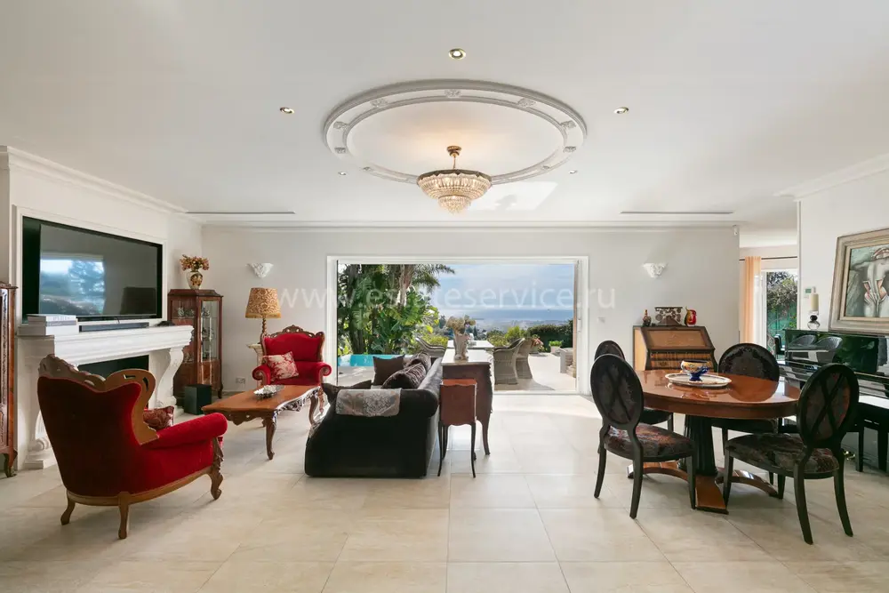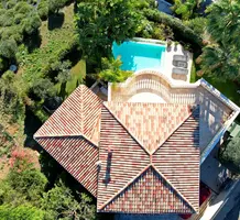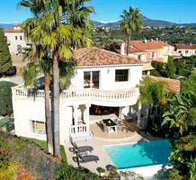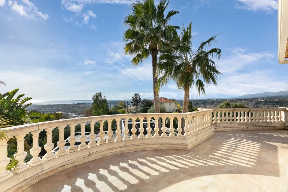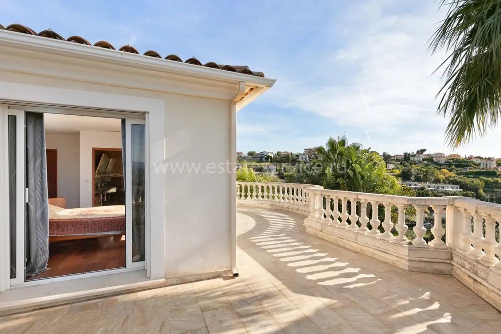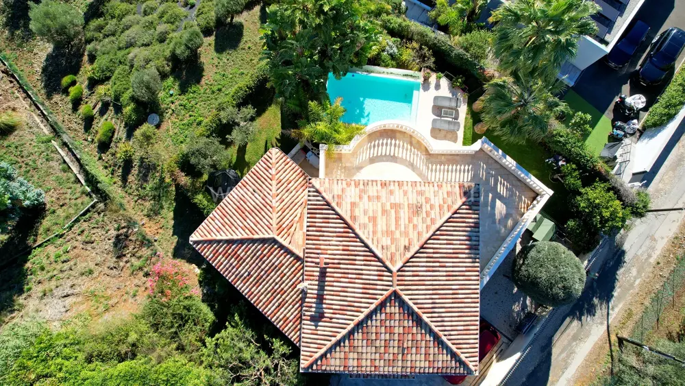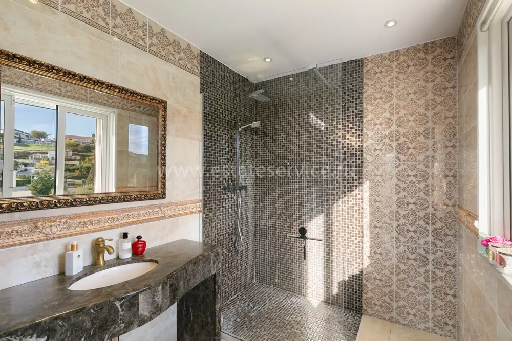 Элегантный просторный дом с тихим расположением и морской панорамой в западной части Ниццы. Жилая площадь 303 m², благоустроенный участок 3.000 m² позволяет построить ещё одну виллу, расширить эту или разделить. В доме - светлая двойная гостиная выходящая на террасу к бассейну-инфинити с подогревом, отдельная кухня с кладовой, спальня-люкс с примыкающим кабинетом, душевой комнатой, гардеробной и прямым выходом на террасу, наверху - две спальни со своими ванными комнатами (одна с гидромассажной ванной, другая с душевой), гардеробными и выходом на большую террасу, а также отдельные туалеты. На уровне сада - отдельная четвертая спальня и несколько подсобных помещений: СПА-зона с джакузи, хаммамом и массажным кабинетом, душевые и прачечная. Отменное состояние, централизованная система отопления, электрические ворота, системы пожарной сигнализации и видеонаблюдения. Годовой налог 4.401 €.
