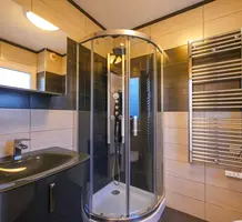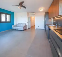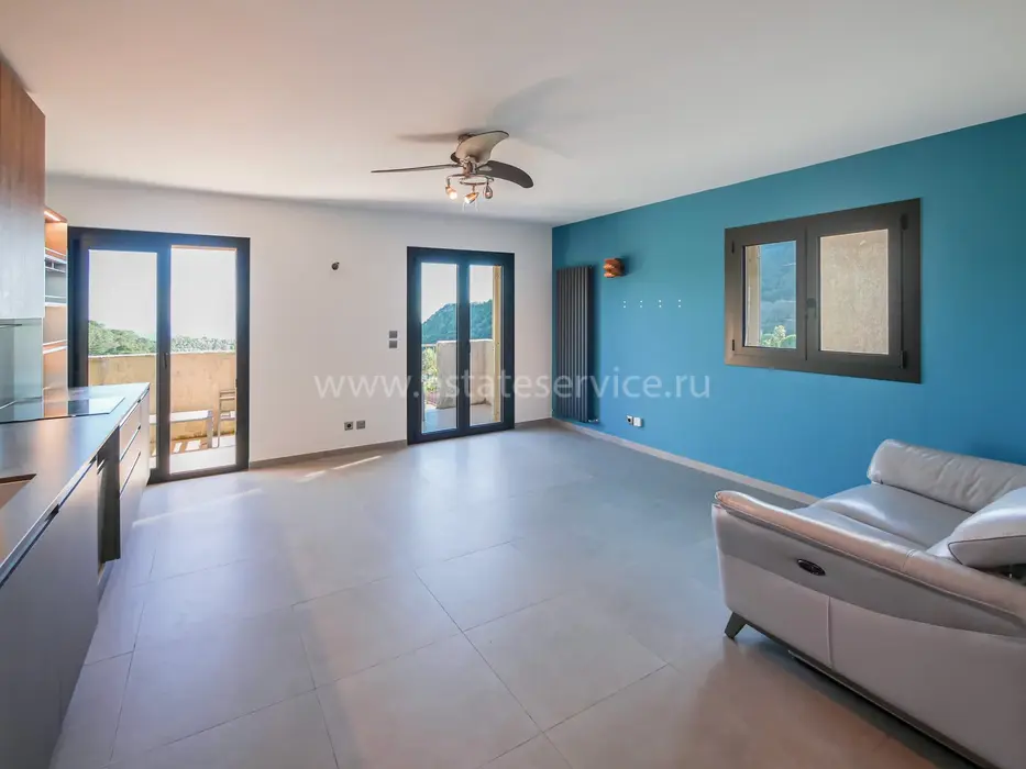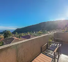 Апартаменты с отдельным входом на верхнем этаже уютной резиденции с бассейном. Общая площадь квартиры 60 m² (жилая 45.5 m²) - прихожая 4.8 m², гостиная-столовая 23.7 m² с встроенной кухней, спальня 9.5 m², гардеробная 4.2 m² - можно использовать под кабинет, душевая комната с туалетом и две террасы 9.5 и 10 m² - потрясающий вид на море, горы и деревню. Отличное состояние, частное парковочное место. Коммунальные платежи 115 €, годовой налог 927 €.