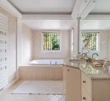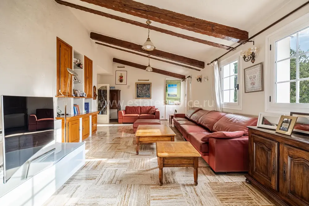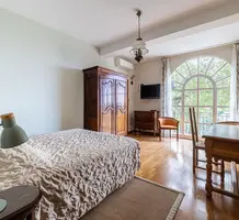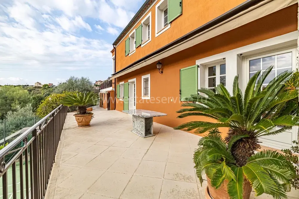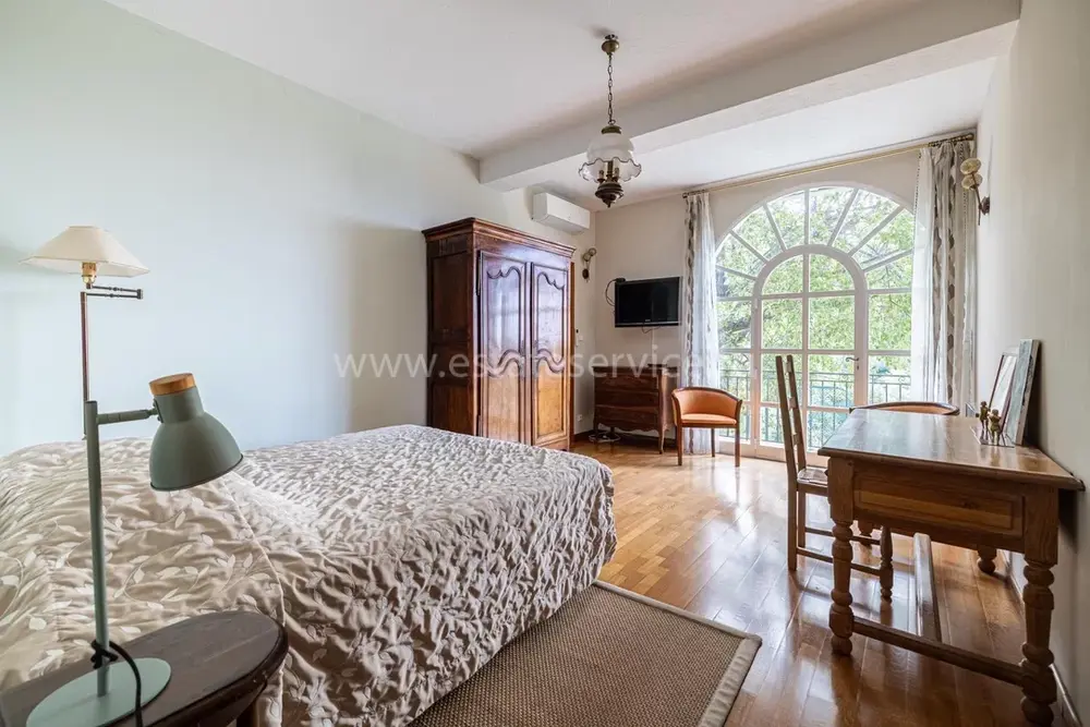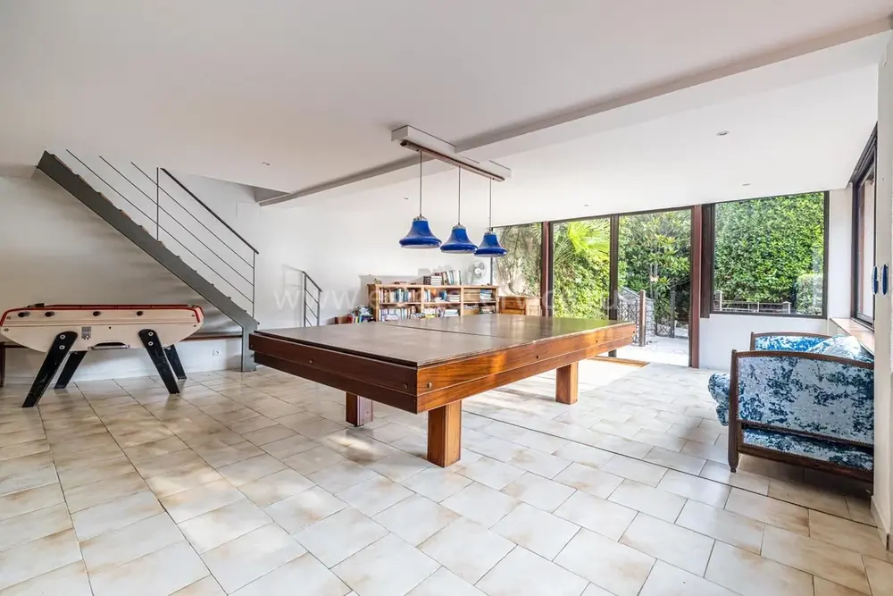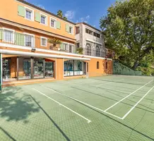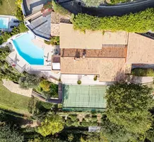 Тихий ухоженный дом на территории престижного закрытого комплекса в северо-западной части Ниццы. Жилая площадь 464 m², на пологом участке 5.000 m² несколько террас с проблеском моря, пейзажный бассейн, теннисный корт, детская площадка, возможность оборудовать корт для падела. В доме - просторная гостиная с обеденной зоной, отдельная кухня, семь спален, семь ванных/душевых комнат, тренажерный зал со спа-зоной, большая игровая с бильярдным столом. Коммунальные платежи 175 €, годовой налог 5.313 €.