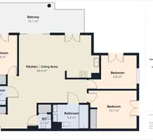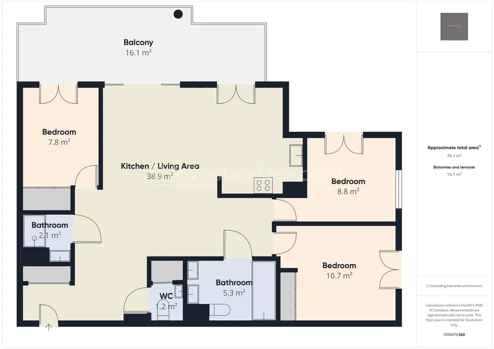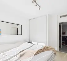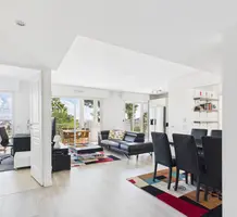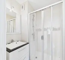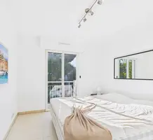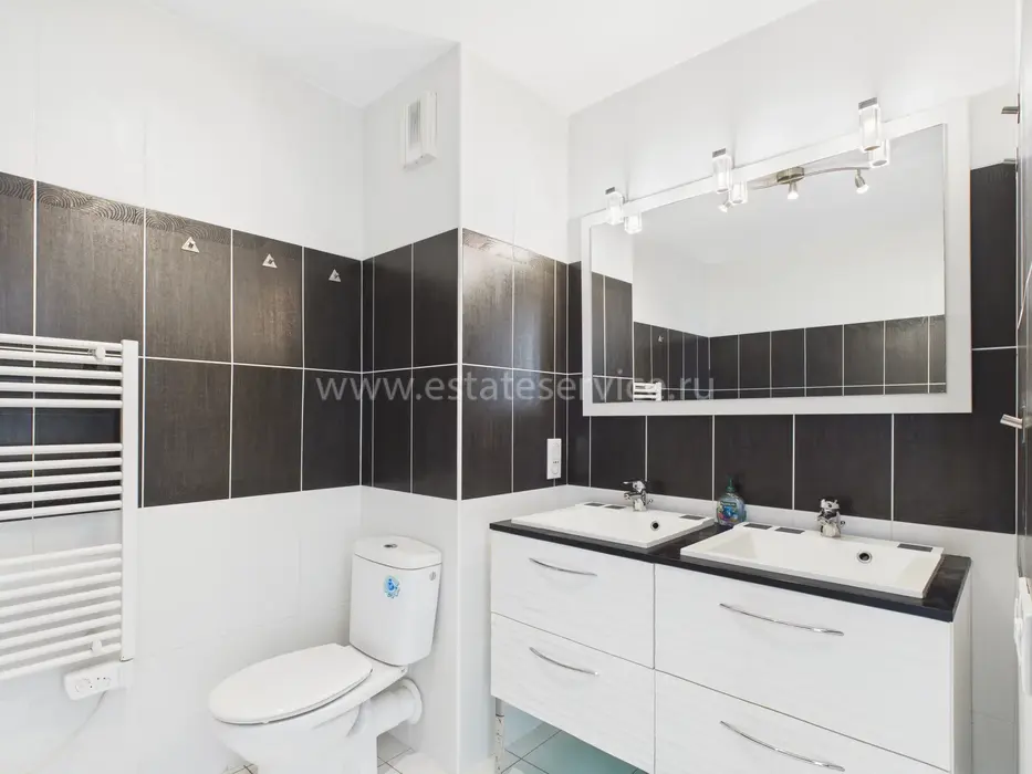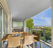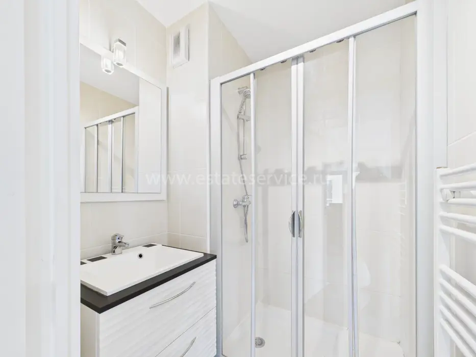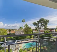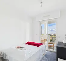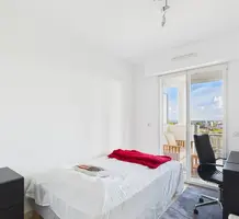 Современная квартира на верхнем (4-м) этаже резиденции с бассейном в 1.2 км от моря и парка Square Albert 1er. Общая площадь 94.2 m² (жилая 78.1 m²) - прихожая, двойная гостиная 38.9 m² с открытой кухней и террасой 16.1 m², три спальни 7.8, 8.8 и 10.7 m², каждая с собственным балкончиком, ванная с гидромассажем, двойной раковиной и туалетом, душевая комната и отдельный санузел. Отличное состояние, включены два крытых паркинга 14 и 15 m², разрешена сдача в аренду. Коммунальные платежи 977 € за квартал.