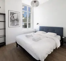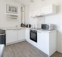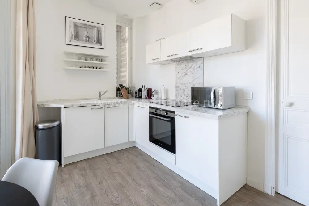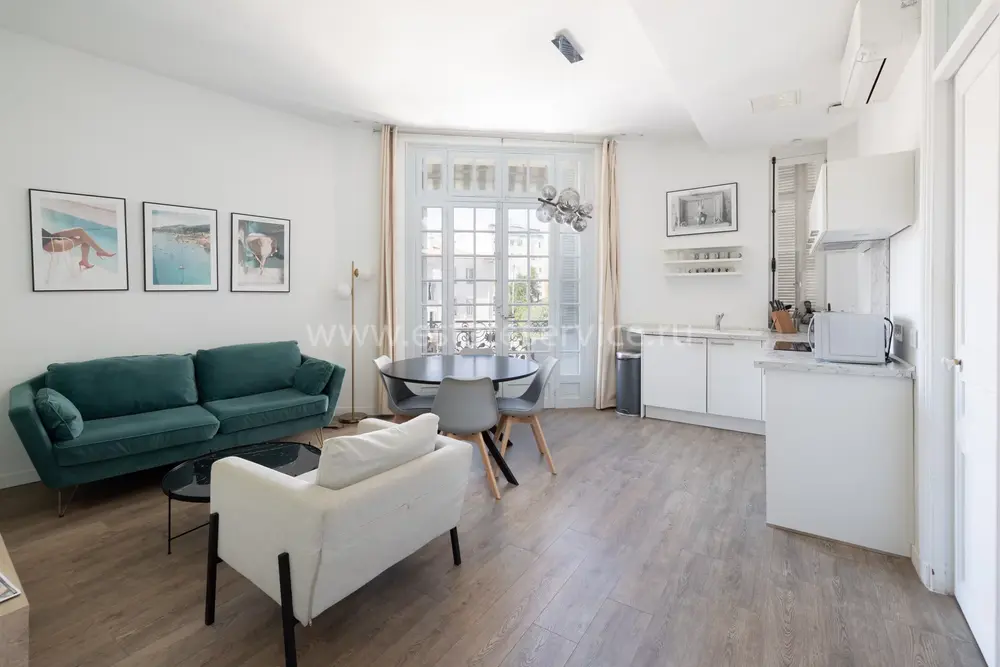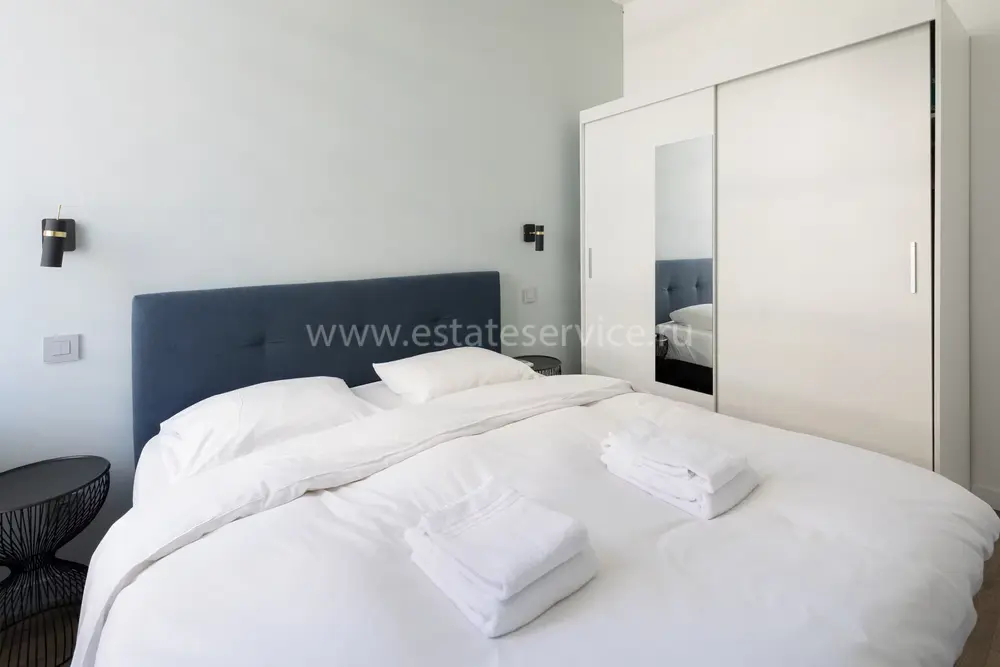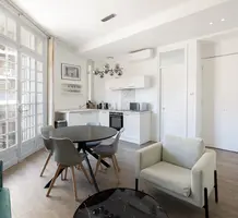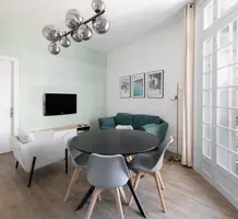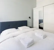 Апартаменты на втором этаже элегантного здания возле нескольких школ и в 750-ти метрах от моря. Общая площадь 52.3 m² (жилая 49.4 m²) - гостиная 22.3 m² с кухней и балконном 2.8 m², две спальни 10.5 и 12.5 m² и душевая комната с туалетом. Свежий ремонт, высокие потолки, продаётся с мебелью и кондиционером.