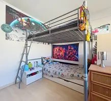 Семейная квартира на втором (2/2) этаже небольшого здания в окрестностях Saint-Laurent-du-Var, сектор Zone Artisanale. Жилая площадь 89 m² - просторная гостиная 38 m² с кухней островного типа, три спальни, главная с большой гардеробной и своей открытой ванной, современная душевая и отдельный туалет. Отличное состояние, бесплатная парковка на территории, тихо. Коммунальные платежи всего 43 €.