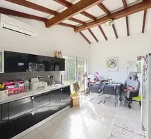 Провансальская вилла на тихой тупиковой улице поблизости от основных (полигон Ривьера, поликлиника Сен-Жан, автомагистраль A8) удобств и необходимой инфраструктуры. Жилая площадь 153 m² + гараж и подвал, ровный земельный участок 3.300 m². В доме - очаровательная прихожая, гостиная вытяжкой и реверсивным кондиционером, отдельная кухня-столовая, две спальни, ванная комната с ванной и душевой. Наверху разместились ещё две спальни с выходом на террасу - есть небольшой проблеск моря, кабинет и общая ванная с туалетом. Удобное расположение, хороший потенциал, есть место под бассейн.