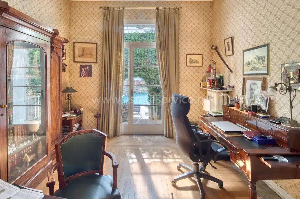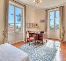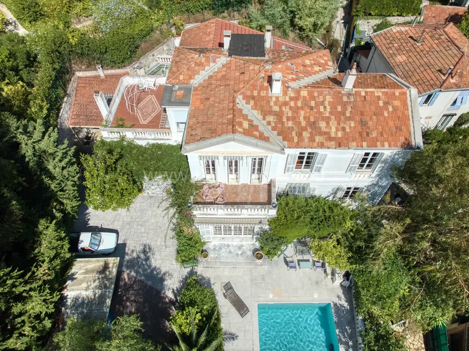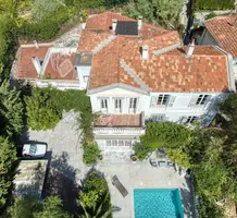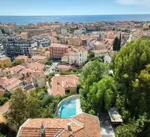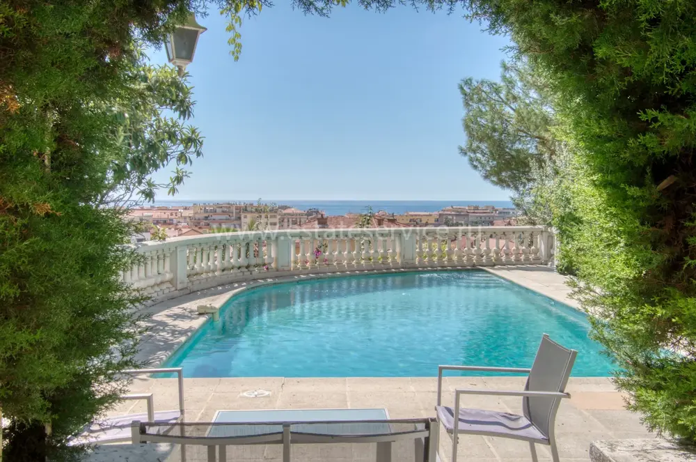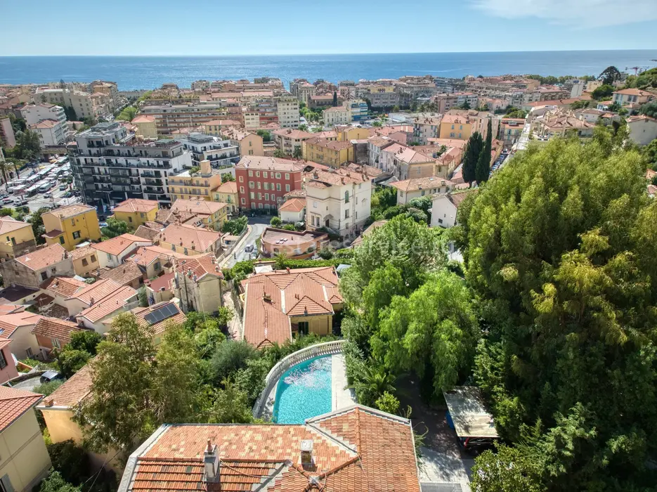 Тихая и просторная вилла Belle Epoque в 700-х метрах от центра, моря и Casino Barrière Menton. Общая площадь 520 m² (жилая 475 m²) включает четырнадцать комнат - просторный холл, гостиная 35 m² с камином, отдельная кухня 30 m², кабинет 20 m², семь больших спален 25-28 m², гостевые апартаменты с отдельным входом. Комнаты и гостиная выходят на южную сторону, имеют приятный вид на море. На прилегающем участке 1.100 m² разбит пышный сад с зоной барбекю, 9-метровый бассейн с террасой и панорамным видом, парковка на четыре автомобиля. Годовой налог 4.700 €.
