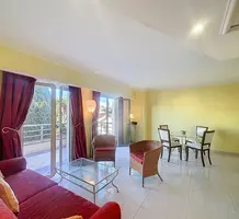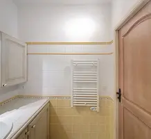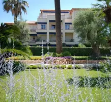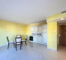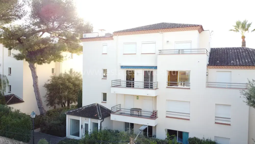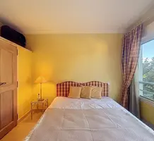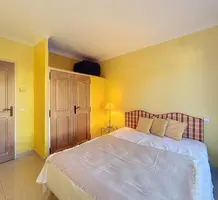 Уютные апартаменты на третьем (предпоследнем, есть лифт) этаже закрытого кондоминиума с ухоженной территорией и бассейном в 500-х метрах от пляжа. Общая площадь квартиры 55.1 m² (жилая 44.9 m²) - прихожая, гостиная с кухней и выходом на удобную террасу 10.2 m² - приятный вид с небольшим проблеском моря, спальня, душевая и отдельный туалет. Коммунальные платежи 260 €, годовой налог 980 €.
