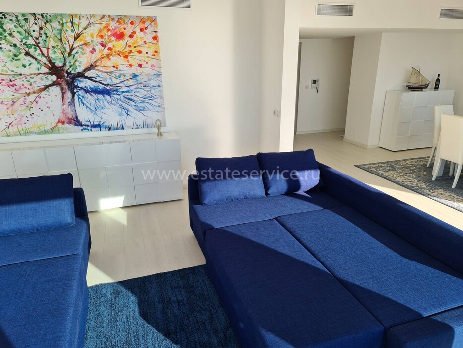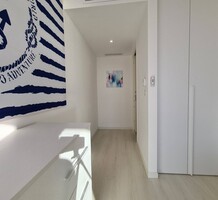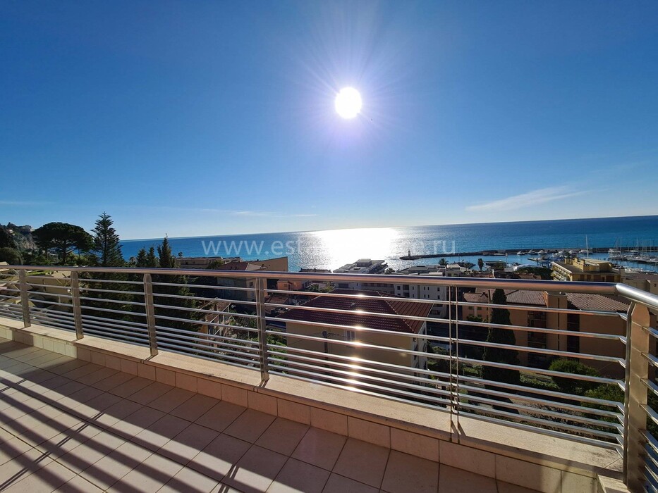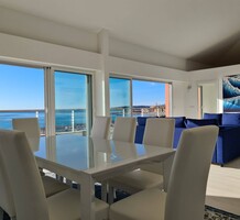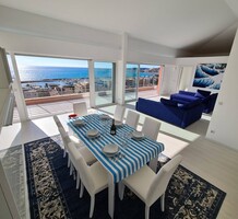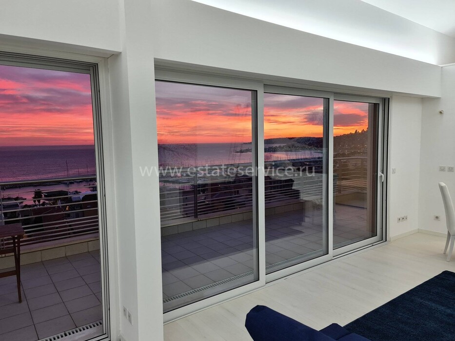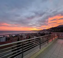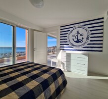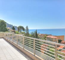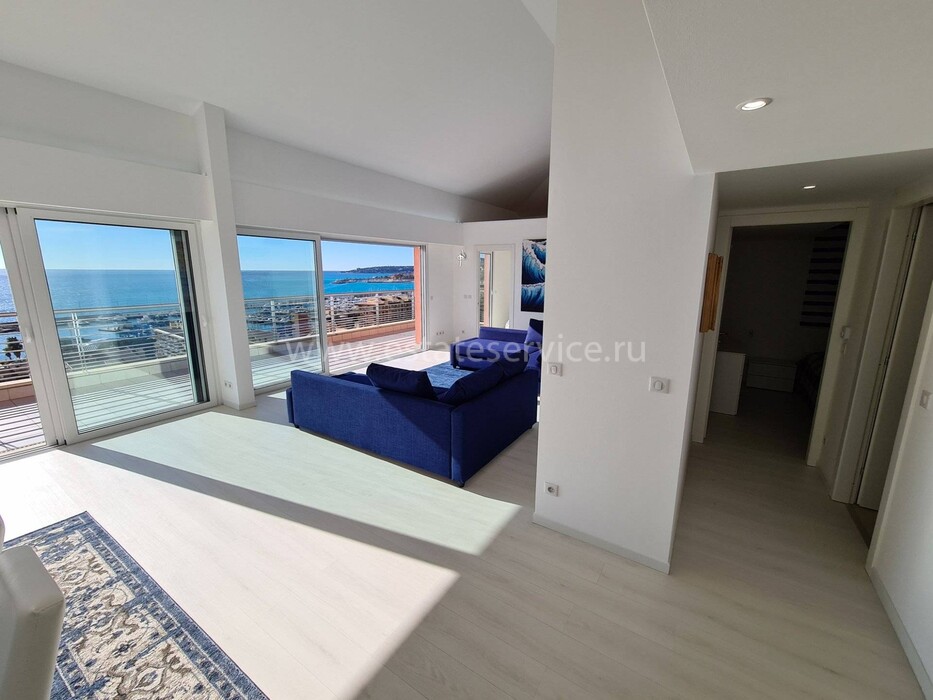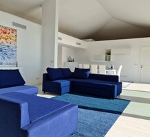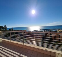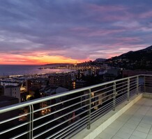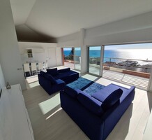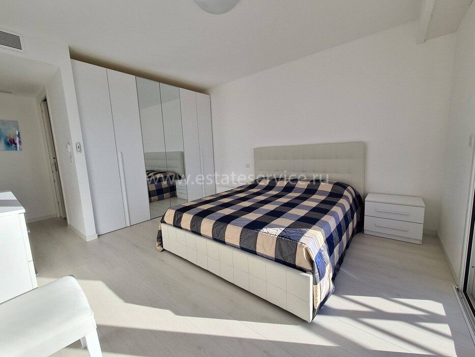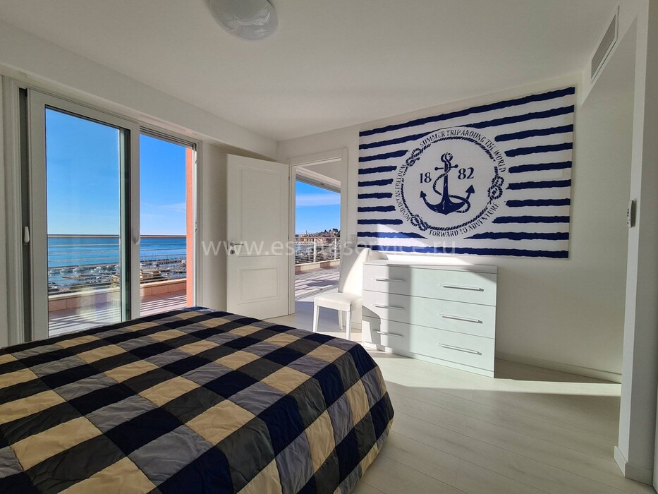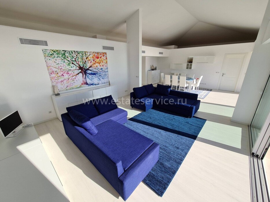 Современные (2015 г) апартаменты на верхнем этаже небольшой (всего на пять квартир) резиденции с лифтом, садом и бассейном в нескольких шагах от моря. Общая площадь 173 m² (жилая 142.9 m²) - прихожая, очень светлая гостиная-столовая с шикарной террасой 34.2 m², отдельная кухня с видом на море, три спальни (две также выходят на террасу), каждая с собственной ванной/душевой комнатами, биде и туалетами. Качественные материалы и отделка, красивые панорамные виды, можно купить гараж на одну или две машины. Коммунальные платежи 500 €.