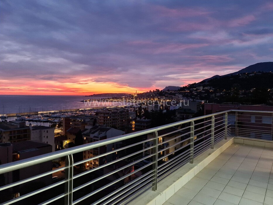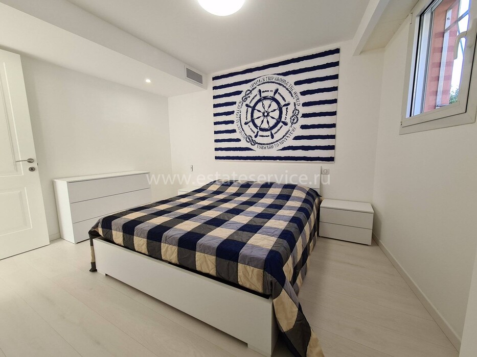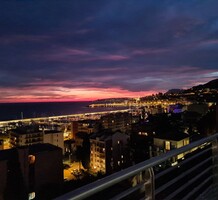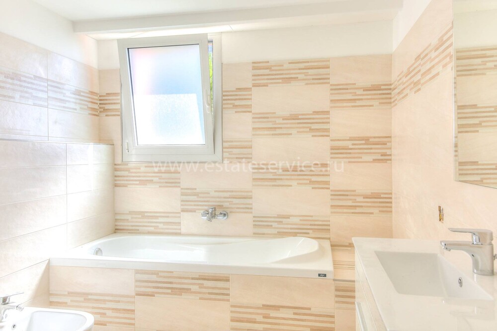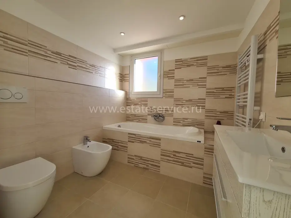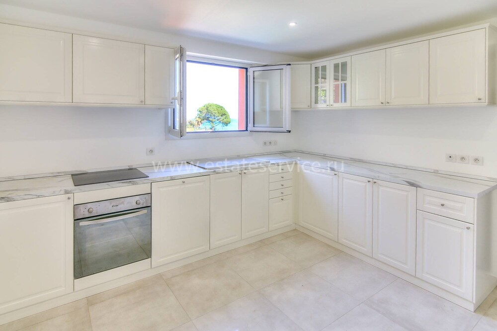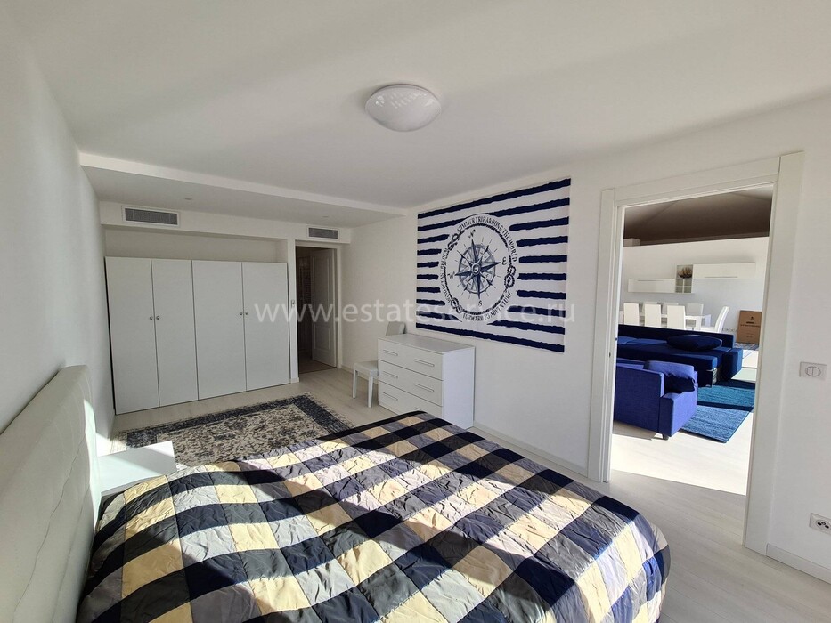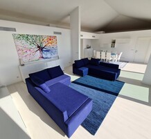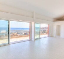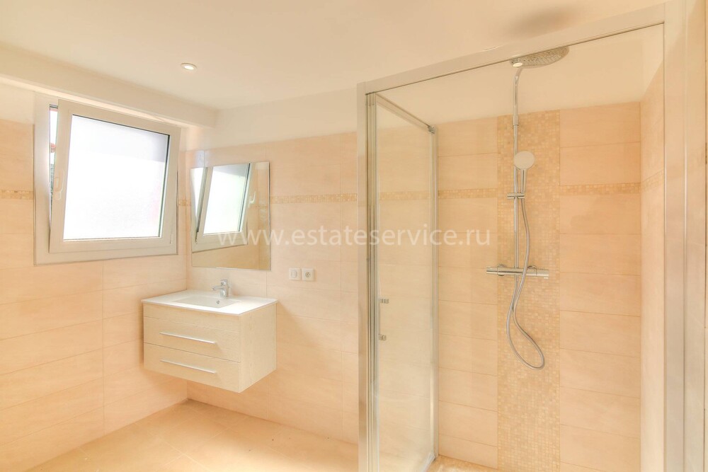 Современные (2015 г) апартаменты на верхнем этаже небольшой (всего на пять квартир) резиденции с лифтом, садом и бассейном в нескольких шагах от моря. Общая площадь 173 m² (жилая 142.9 m²) - прихожая, очень светлая гостиная-столовая с шикарной террасой 34.2 m², отдельная кухня с видом на море, три спальни (две также выходят на террасу), каждая с собственной ванной/душевой комнатами, биде и туалетами. Качественные материалы и отделка, красивые панорамные виды, можно купить гараж на одну или две машины. Коммунальные платежи 500 €.