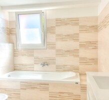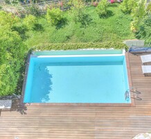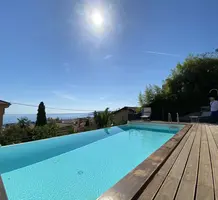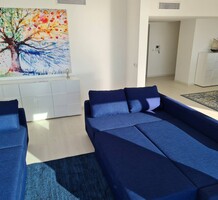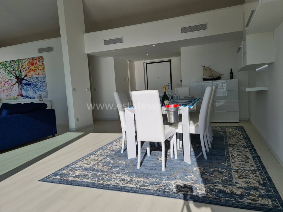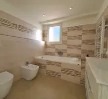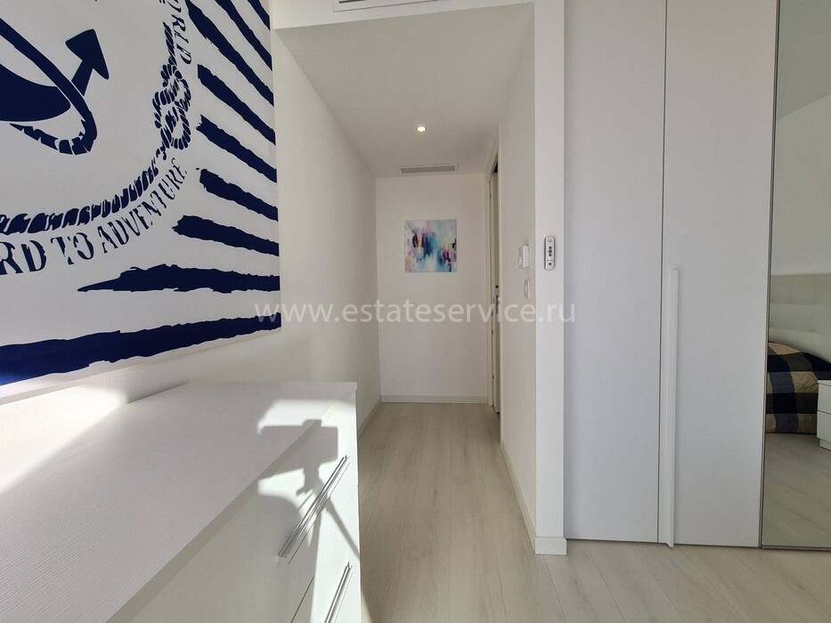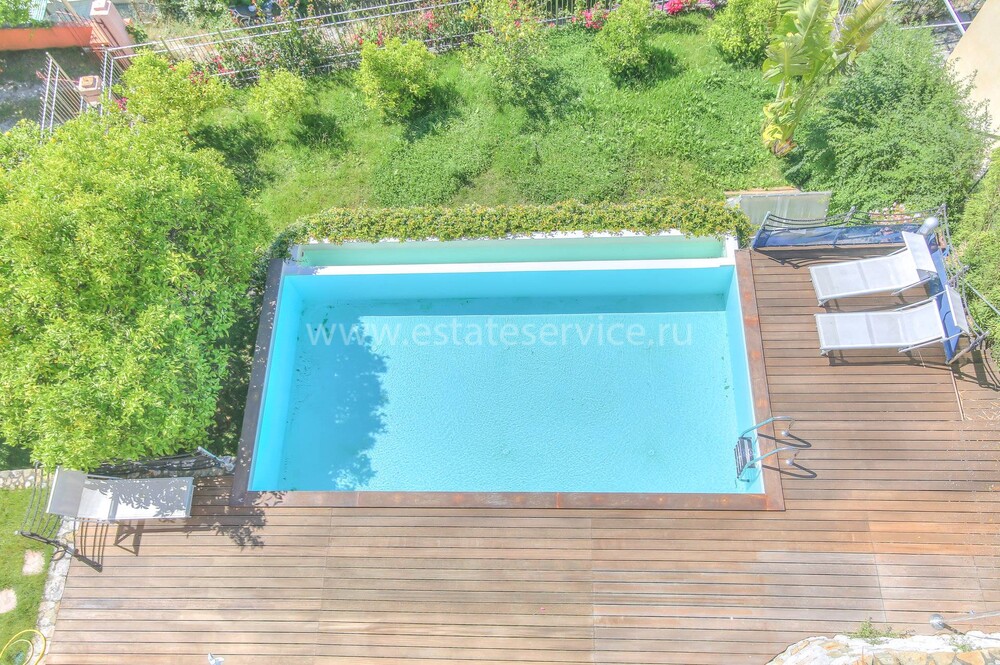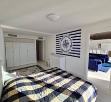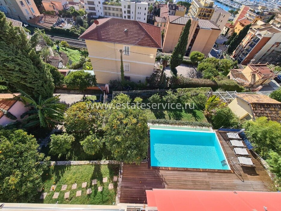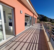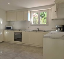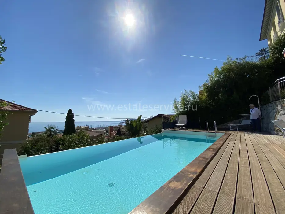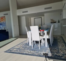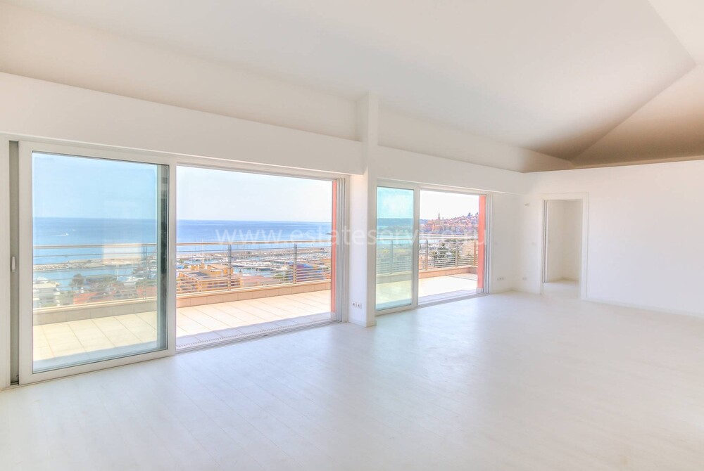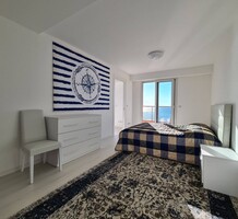 Современные (2015 г) апартаменты на верхнем этаже небольшой (всего на пять квартир) резиденции с лифтом, садом и бассейном в нескольких шагах от моря. Общая площадь 173 m² (жилая 142.9 m²) - прихожая, очень светлая гостиная-столовая с шикарной террасой 34.2 m², отдельная кухня с видом на море, три спальни (две также выходят на террасу), каждая с собственной ванной/душевой комнатами, биде и туалетами. Качественные материалы и отделка, красивые панорамные виды, можно купить гараж на одну или две машины. Коммунальные платежи 500 €.