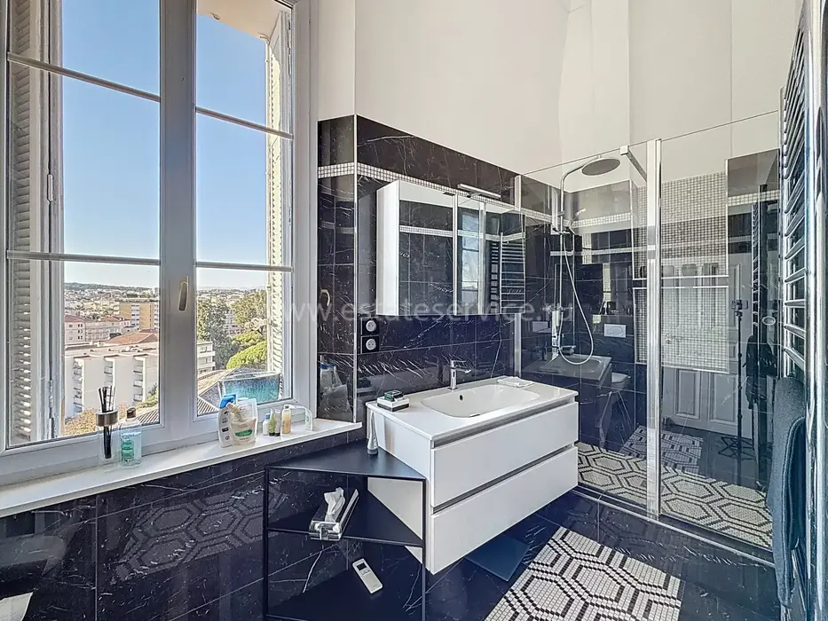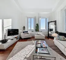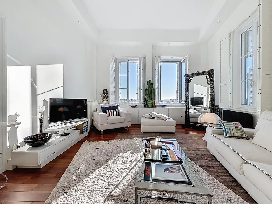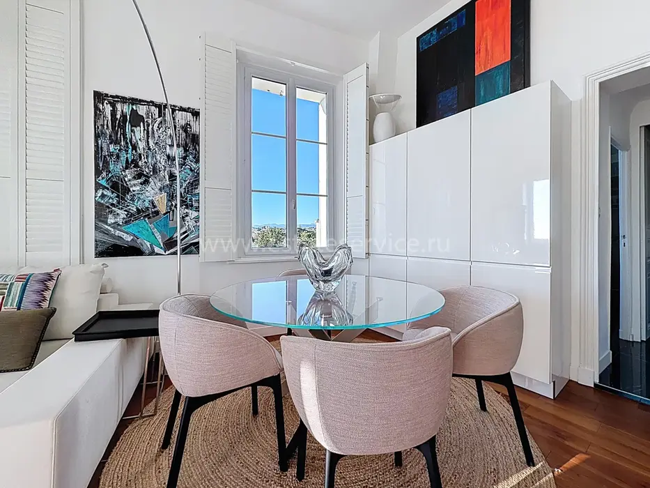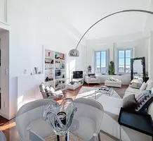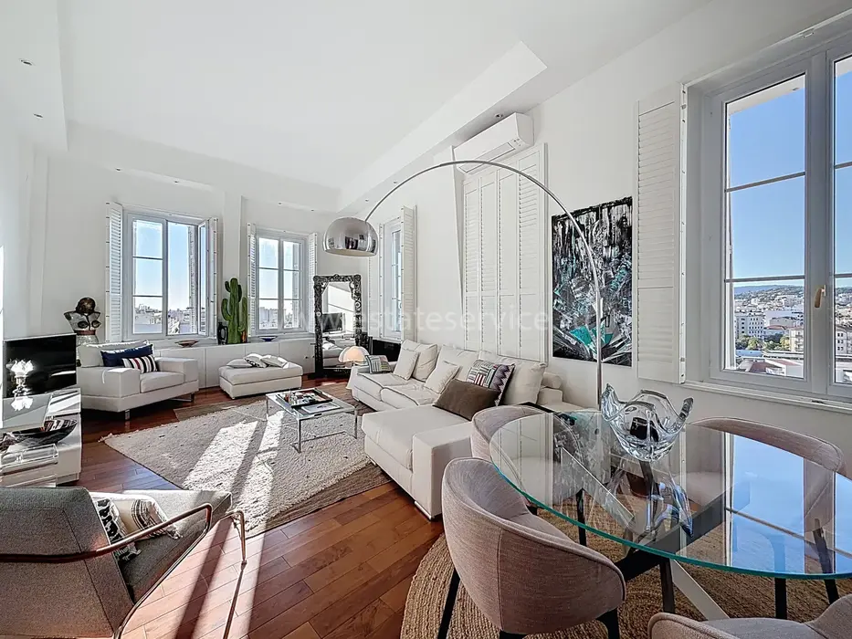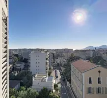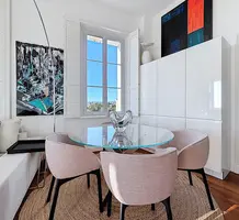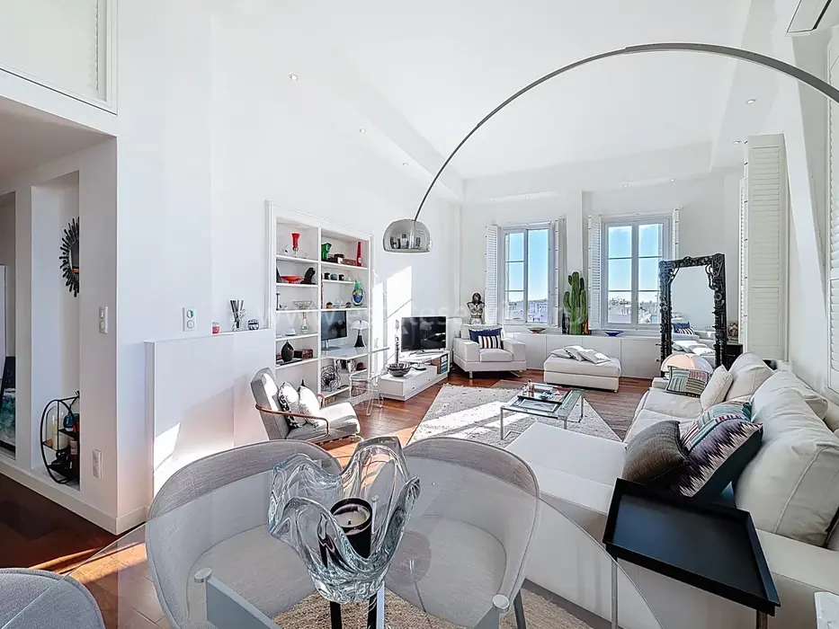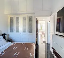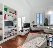 Со вкусом отремонтированная на верхнем (пятом) этаже буржуазного здания с лифтом. Жилая площадь 74 m² - прихожая, светлая и просторная гостиная-столовая с открытой кухней, две спальни (одна на антресоли), большая душевая комната с окном и отдельный туалет. Отличное состояние, высокие потолки, двойная экспозиция, открытый вид на Каннский залив. Коммунальные платежи 220 €.