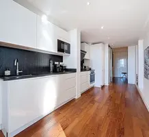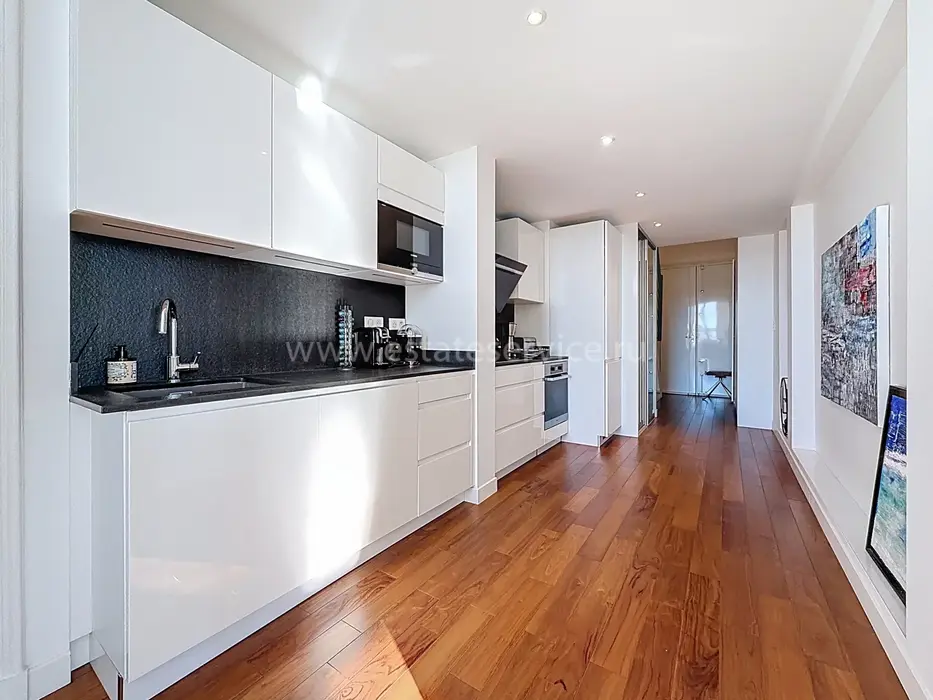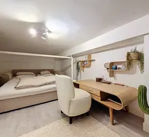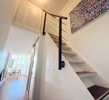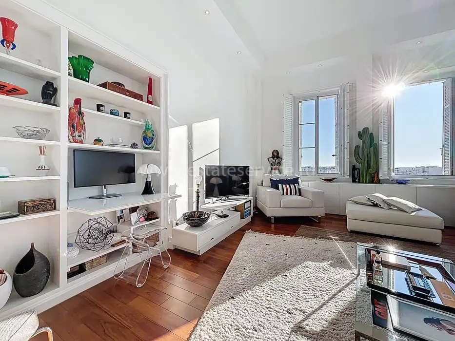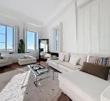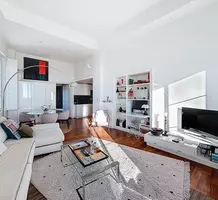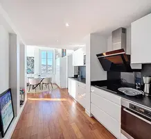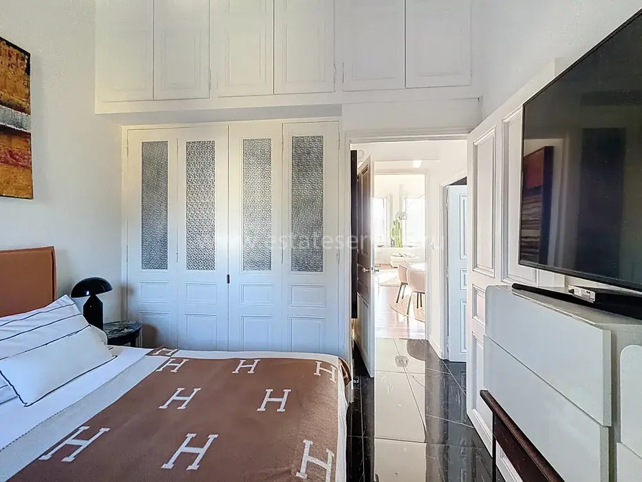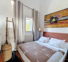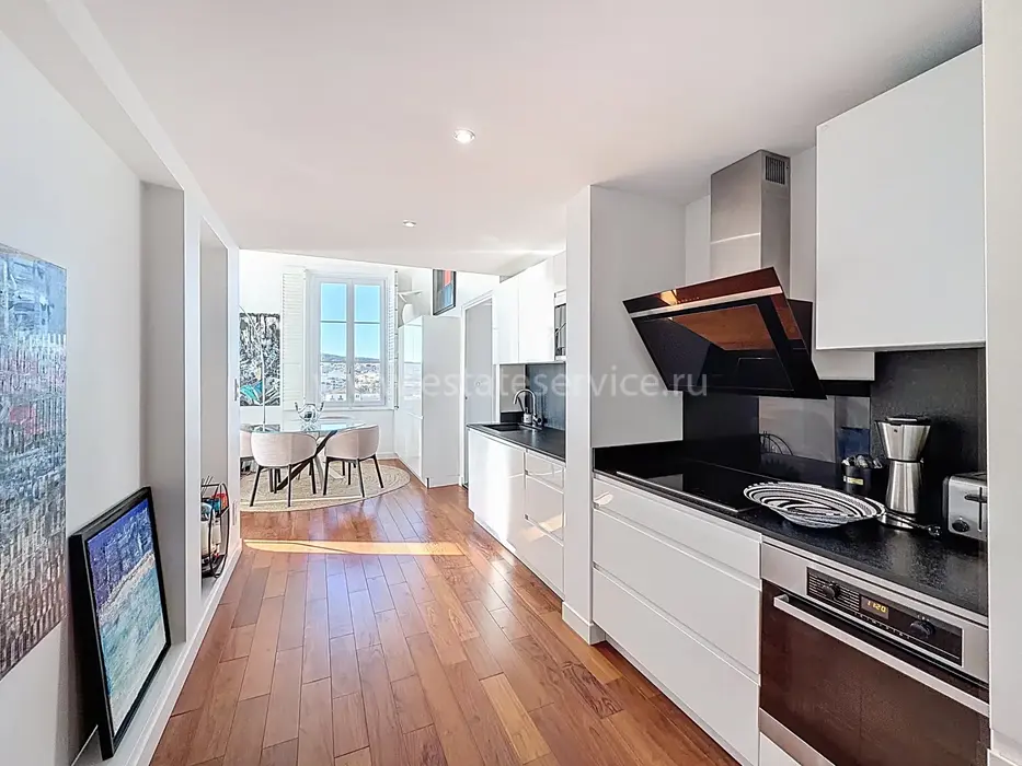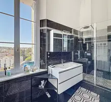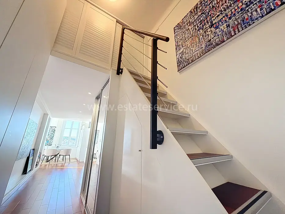 Со вкусом отремонтированная на верхнем (пятом) этаже буржуазного здания с лифтом. Жилая площадь 74 m² - прихожая, светлая и просторная гостиная-столовая с открытой кухней, две спальни (одна на антресоли), большая душевая комната с окном и отдельный туалет. Отличное состояние, высокие потолки, двойная экспозиция, открытый вид на Каннский залив. Коммунальные платежи 220 €.