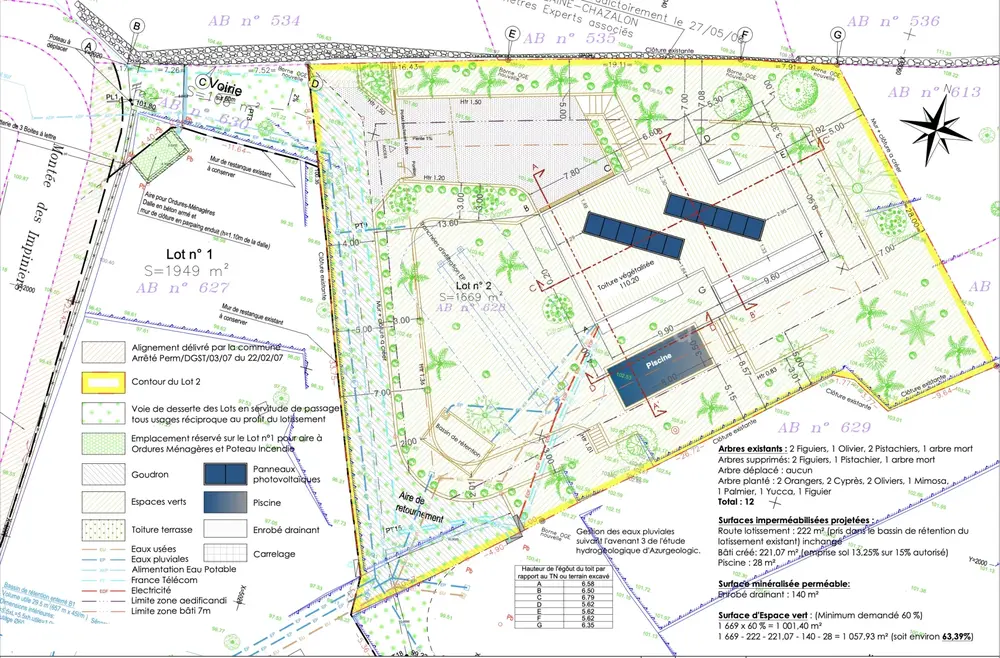 Участок с подведенными коммуникациями в тихом и зеленом частном поселке в четырёх километрах от моря. Площадь земли 1.669 m², получено разрешение на строительство современной виллы 330 m² на трёх уровнях. Доступ по частной асфальтированной дороге, подведены вода, электричество, телекоммуникации и центральная канализация, хороший потенциал.
