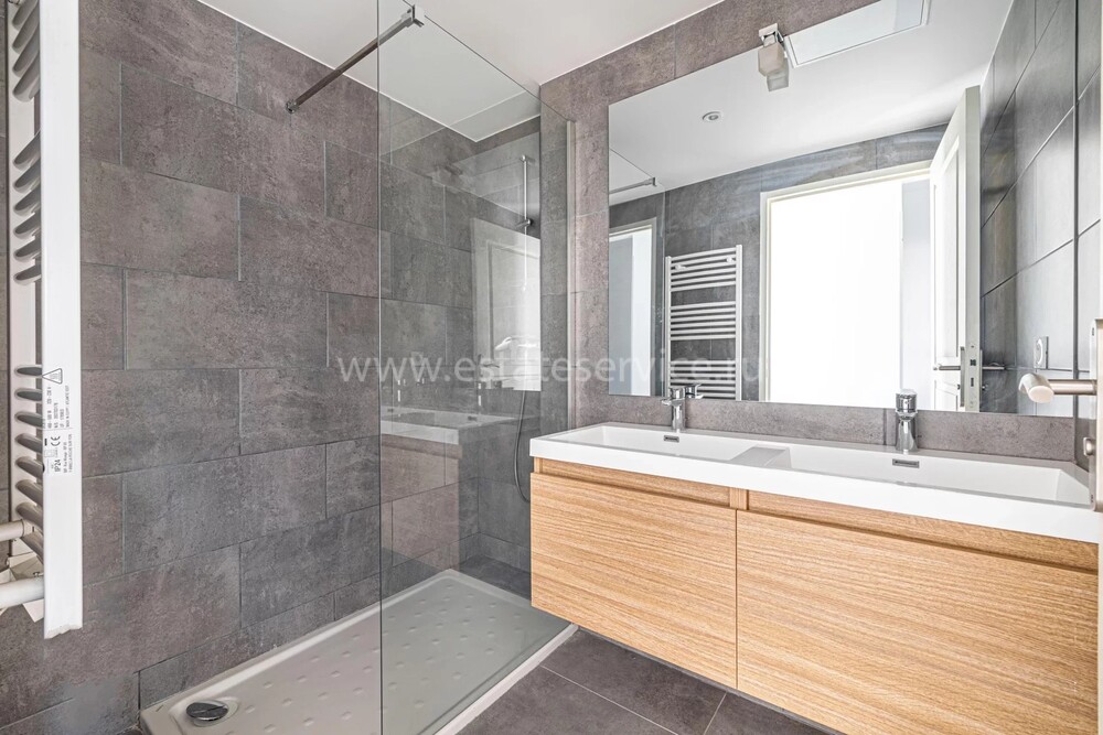 Аккуратный смежный дом в комплексе с тихим расположением поблизости от всех (школа, ясли, магазины и супермаркет в шаговой доступности) удобств. Общая площадь 79.2 m² (жилая 67 m²), огороженный частный садик 106 m². На первом уровне - прихожая с гардеробной, светлая гостиная-столовая 27.3 m² с открытой кухней, выходом на террасу 7.1 m² и в сад, кладовая и санузел, наверху - две спальни 10.7 и 14.8 m² с встроенными шкафами, одна также со своим балконом 4.8 m², общая душевая комната и отдельный туалет. Здание 2021 года постройки, качественные материалы, десятилетняя гарантия от застройщика, включены подвальное помещение 3 m² и двойной паркинг 26 m² в подземном гараже. Коммунальные платежи 180 €.