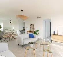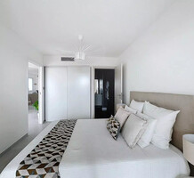 Квартира на верхнем этаже готовой новостройки в шаговой доступности от школы, пляжа и магазинов. Общая площадь 115.4 m² (жилая 90.5 m²) - прихожая, гостиная с открытой кухней и террасой 24.8 m², три спальни, главная с душевой, общая душевая/туалет. Качественная отделка, реверсивный кондиционер, можно купить подземный паркинг - 33.000 €, кладовая - 6.000 €. Коммунальные платежи 230 €.