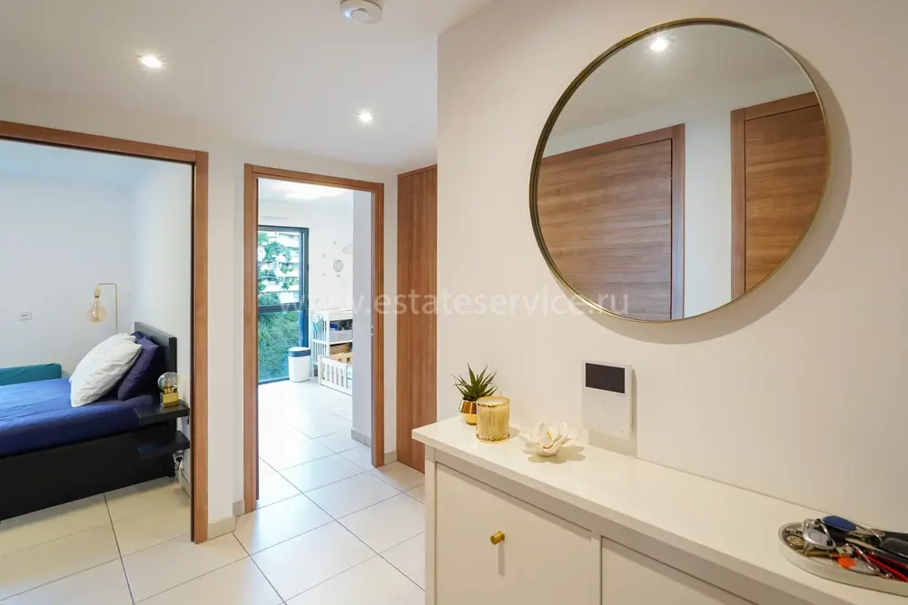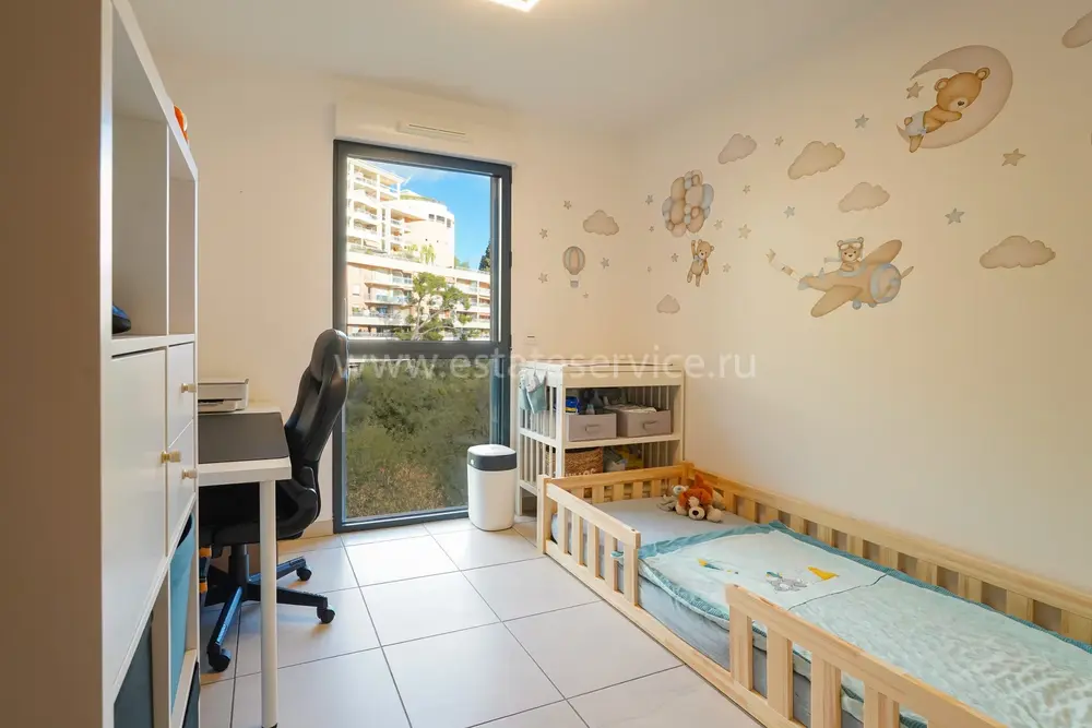 Свежие апартаменты на третьем этаже комплекса с лифтом, сауной и фитнес-залом. Общая площадь 73.3 m² (жилая 62.3 m²) - прихожая 4.9 m², гостиная 31.5 m² с примыкающей кухней и удобной угловой террасой 11 m² - прямой вид на море и Монако, две спальни 9.4 и 10.5 m², ванная комната и отдельный туалет. Практически новое состояние, парковочное место с удобным доступом. Коммунальные платежи 160 €, годовой налог 1.385 €.