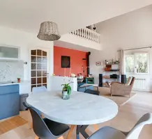 Обновлённый дом с тихим расположением и красивой морской панорамой. Жилая площадь 154 m², на трёх уровнях разместились - просторный холл, гостиная-столовая с высоким потолком/мезонином, открытой кухней и выходом на большую террасу, четыре спальни, две душевые комнаты с туалетом, гардеробная и подвал. Отличное состояние, двойные стеклопакеты, индивидуальное электрическое отопление + дровяная печь, зона патио, центральная канализация, два частных парковочных места. Годовой налог 1.767 €.